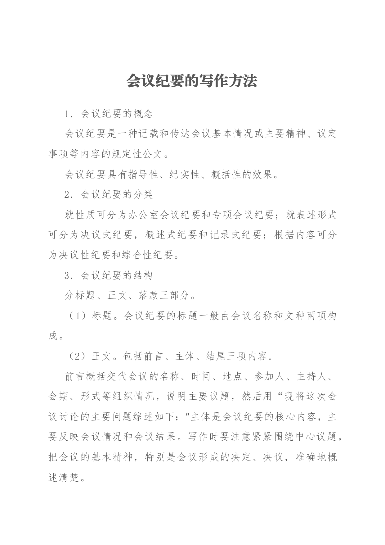 标题:会议纪要的写作方法