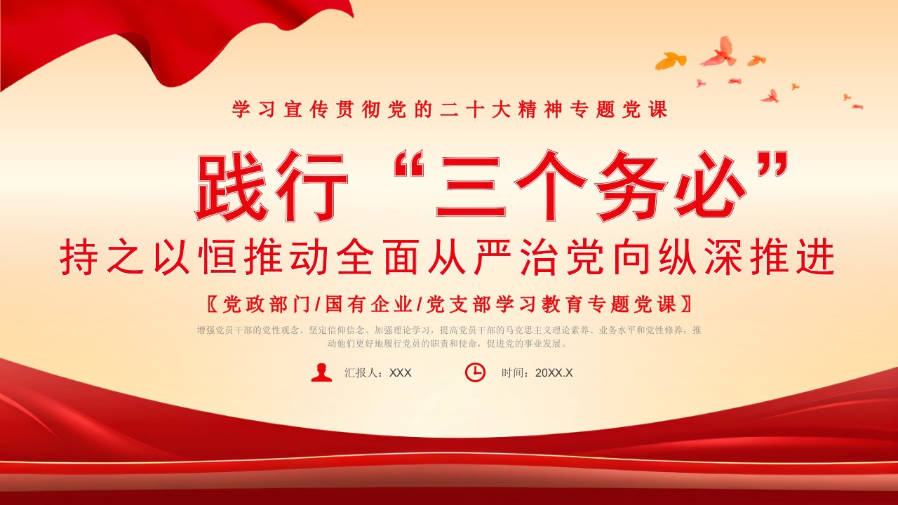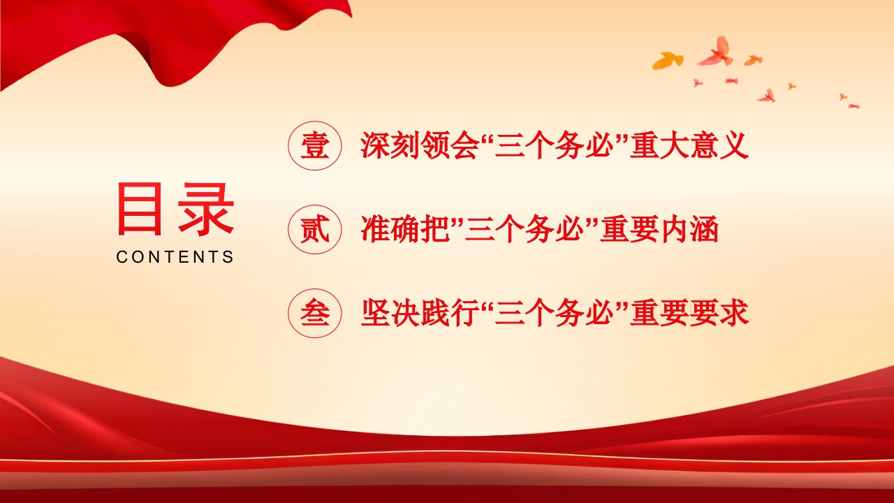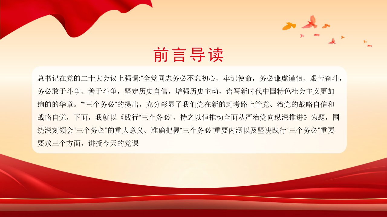 标题:践行三个务必党课课件PPT(2024)