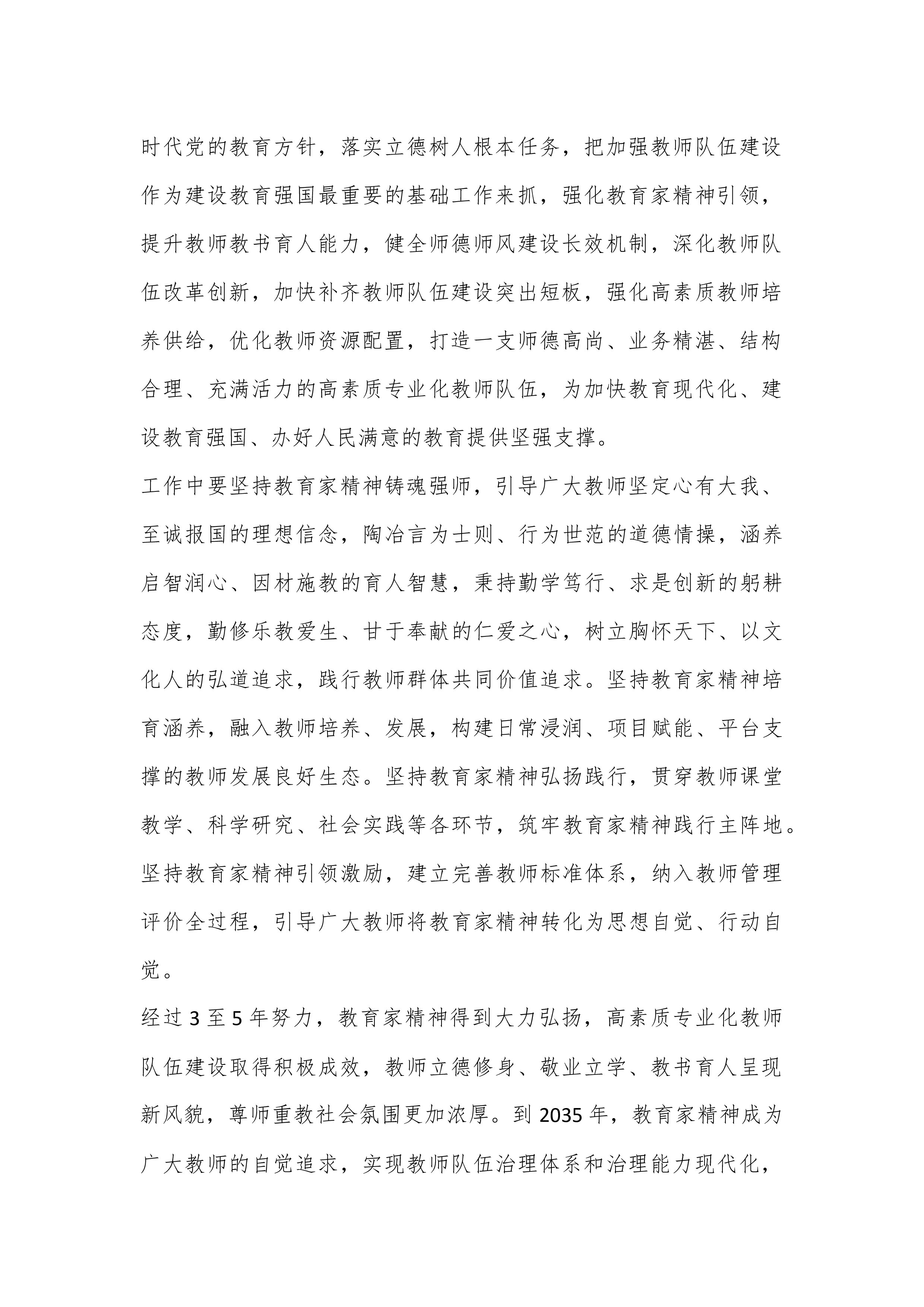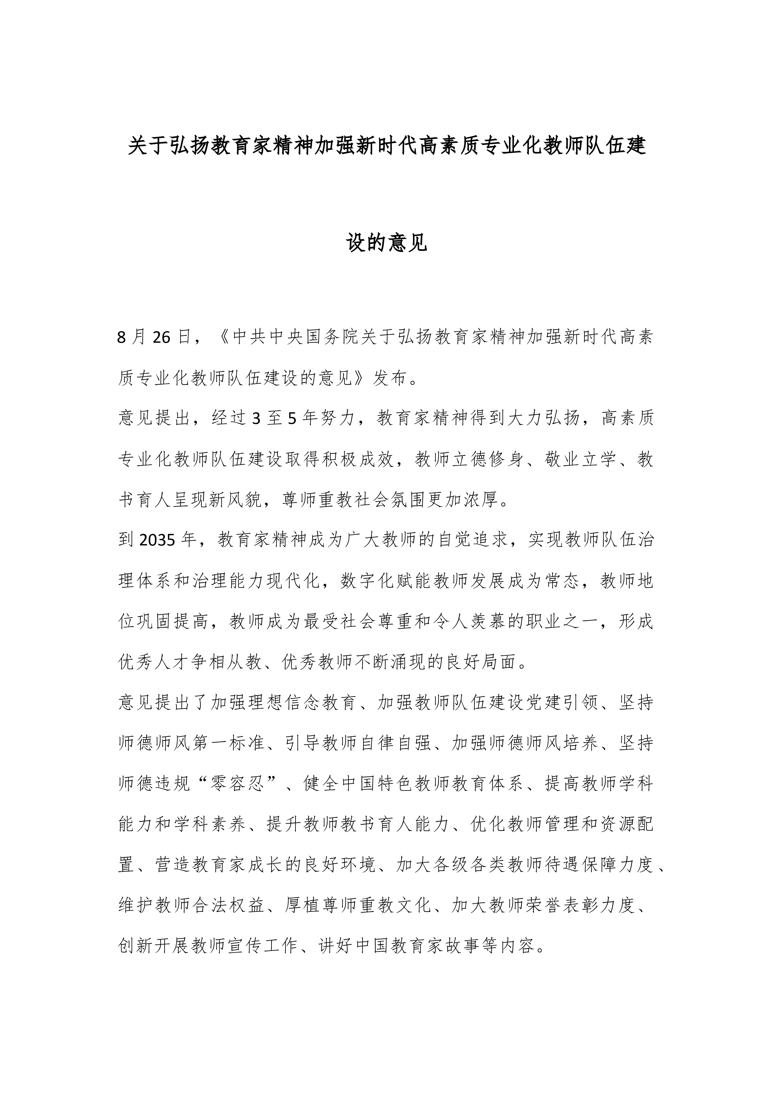 关于弘扬教育家精神加强新时代高素质专业化教师队伍建设的意见.