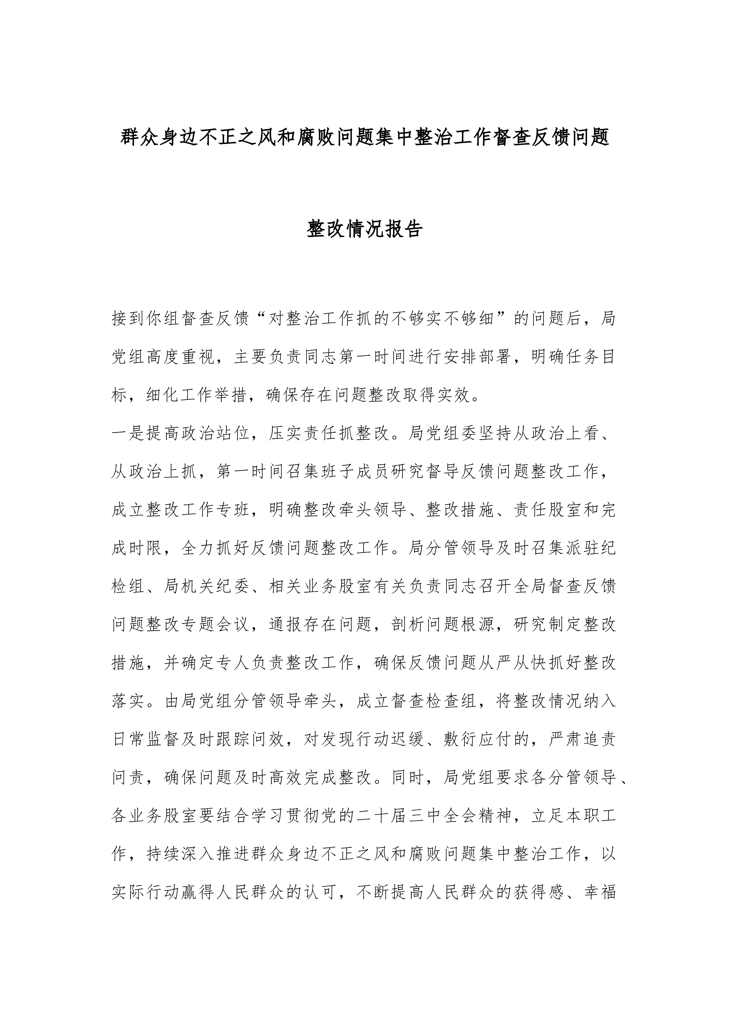 群众身边不正之风和腐败问题集中整治工作督查反馈问题整改情况报告