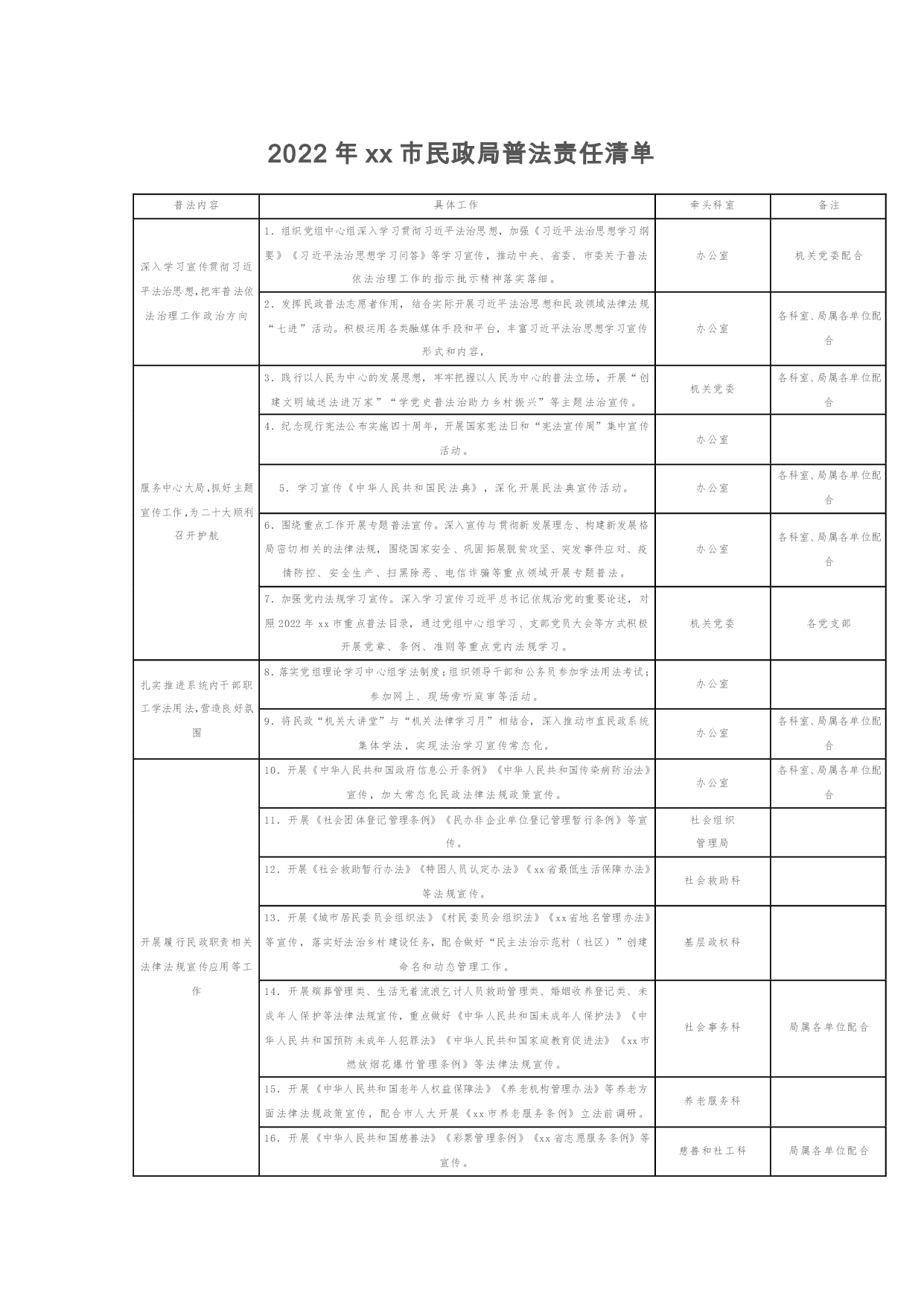 标题:2022年xx市民政局普法责任清单