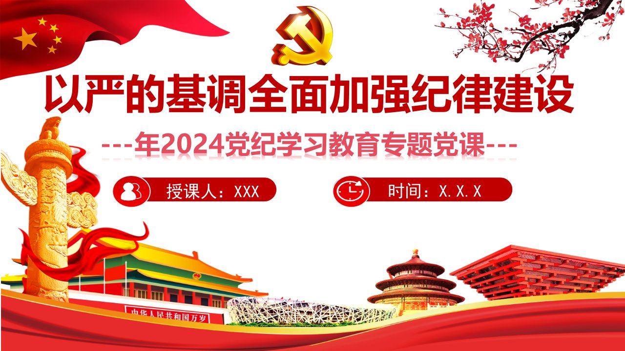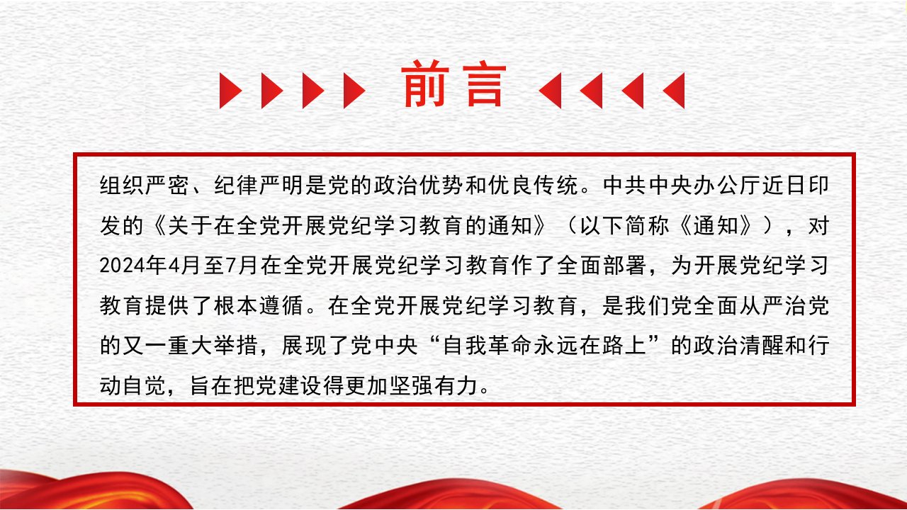 标题:2024年党纪学习教育专题党课讲稿ppt课件:以严的基调全面加强纪律建设与学深悟透六大纪律内涵要义,确保党纪学习教育取得实效【两套】供参考