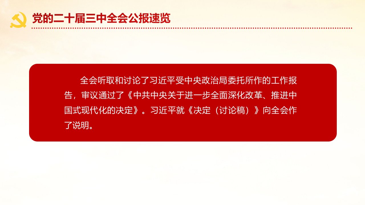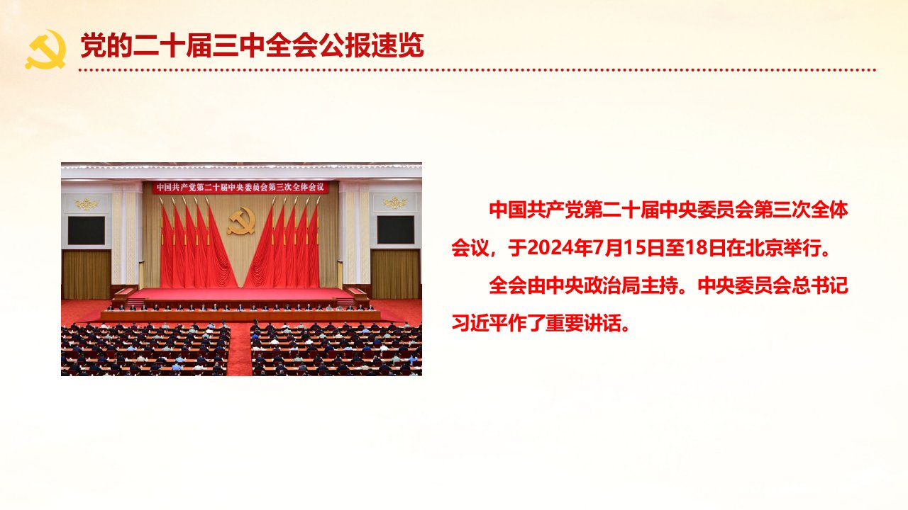 标题:中国共产党第二十届中央委员会第三次全体会议公报速览