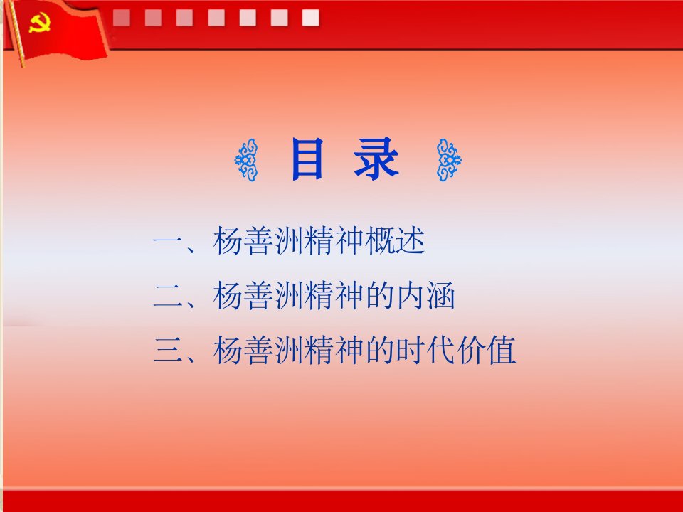标题:党课PPT:杨善洲精神内涵及时代价值