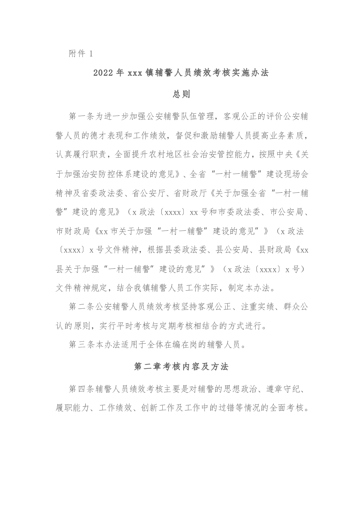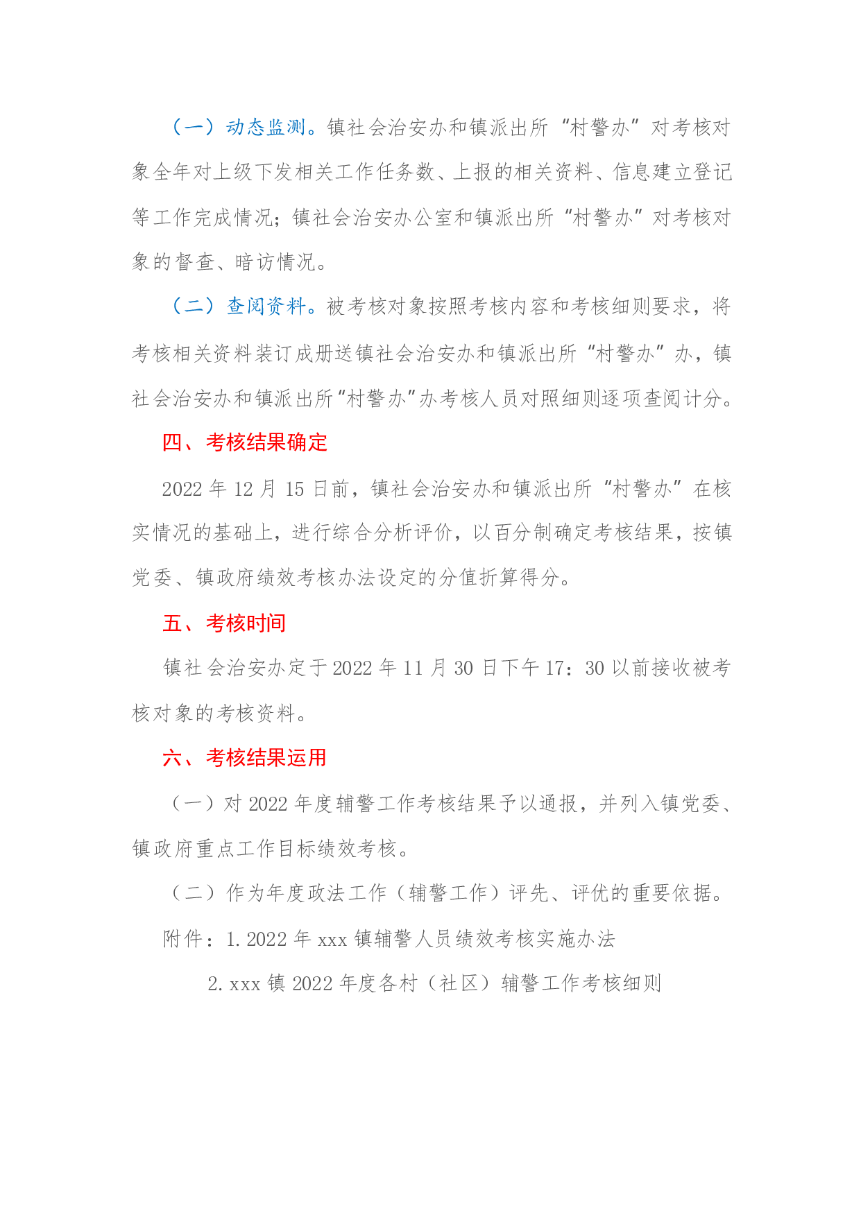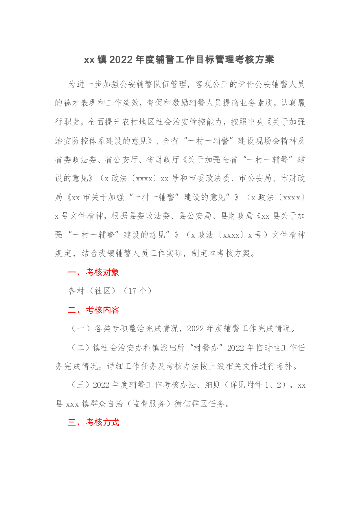 标题:xx镇2022年度辅警工作目标管理考核方案