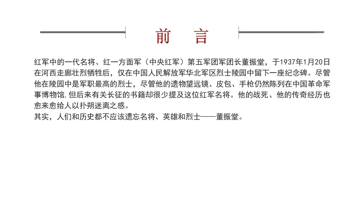 标题:坚决革命的将领董振堂的红色故事ppt