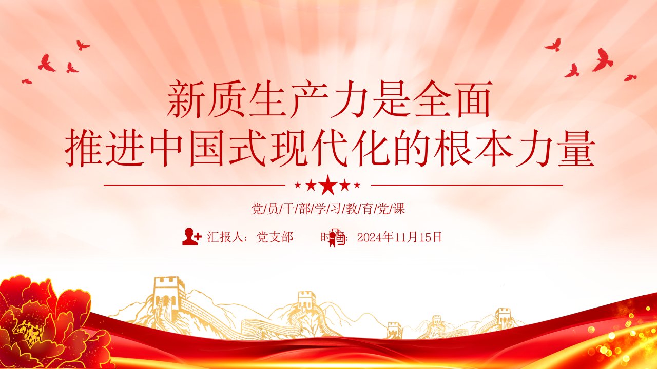标题:党员干部学习二十届三中全会党课PPT 讲稿:新质生产力是推进中国式现代化的强大底气