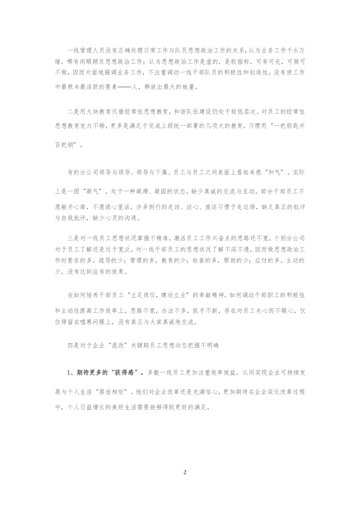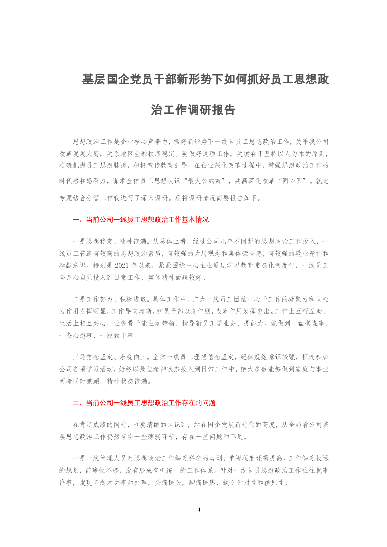 标题:基层国企党员干部新形势下如何抓好员工思想政治工作调研报告