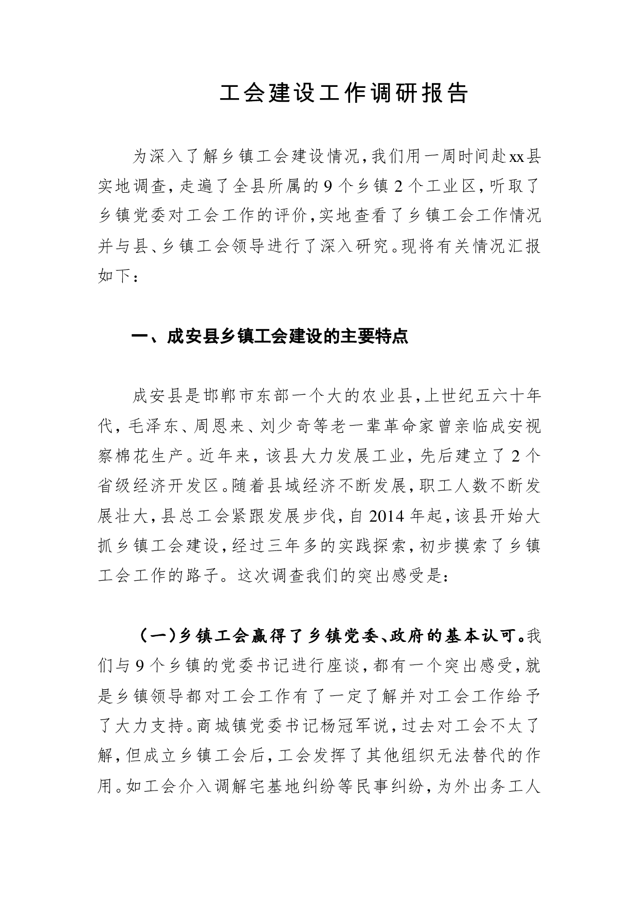 标题:工会建设工作调研报告