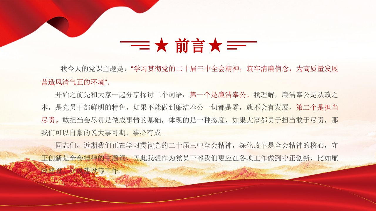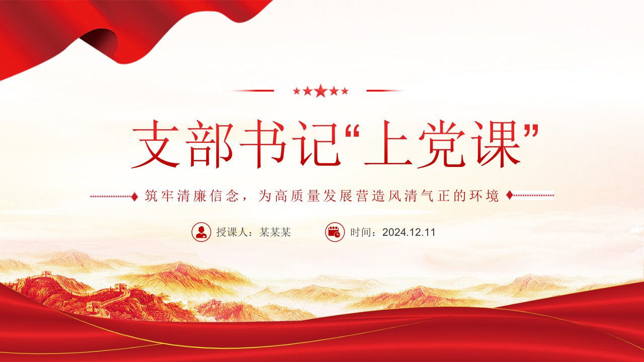 标题:2024支部书记上党课微党课PPT:筑牢清廉信念营造风清气正生态