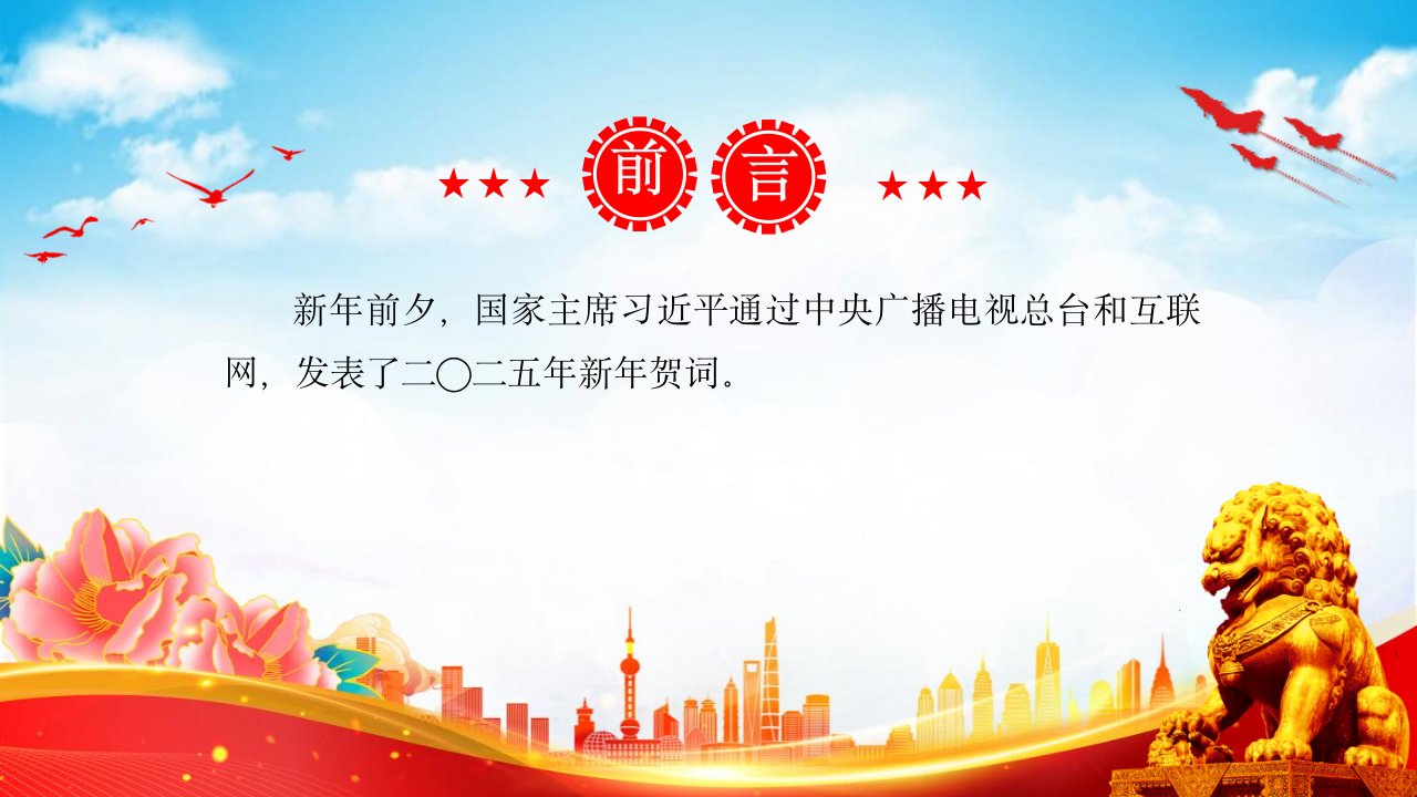 标题:2025年贺词解读学习党课PPT课件