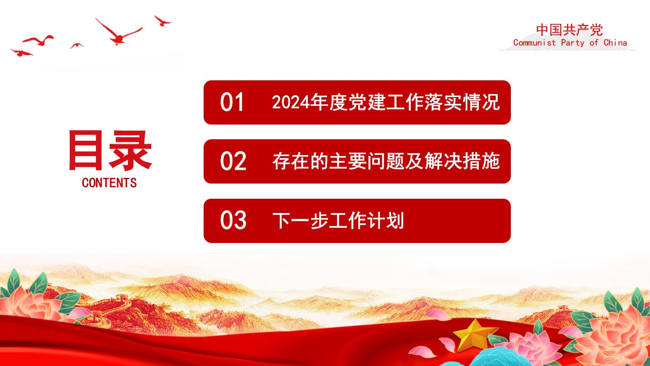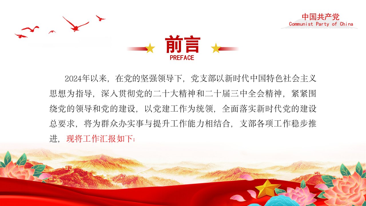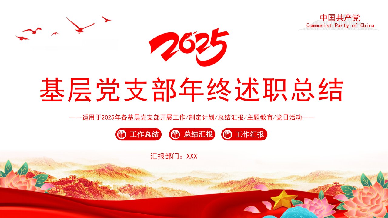 标题:2024基层党支部年终述职总结,党建工作总结工作计划PPT模板