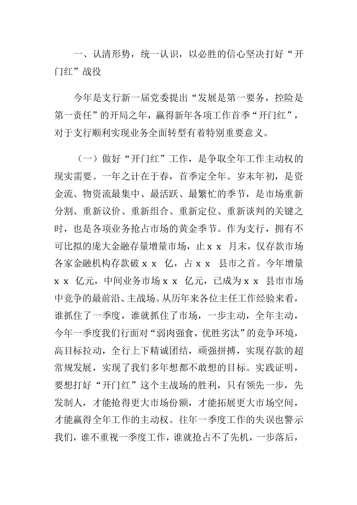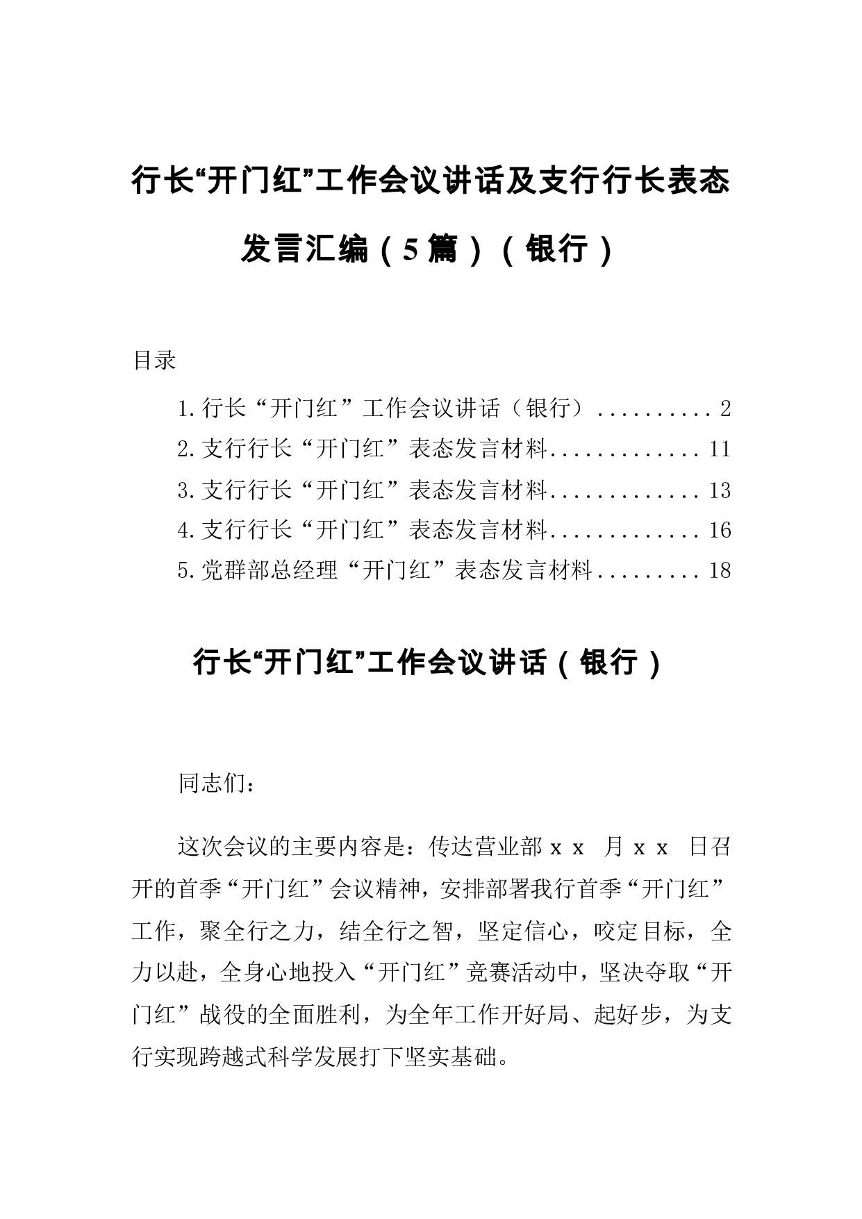 标题:行长“开门红”工作会议讲话及支行行长表态发言汇编(5篇)(银行)