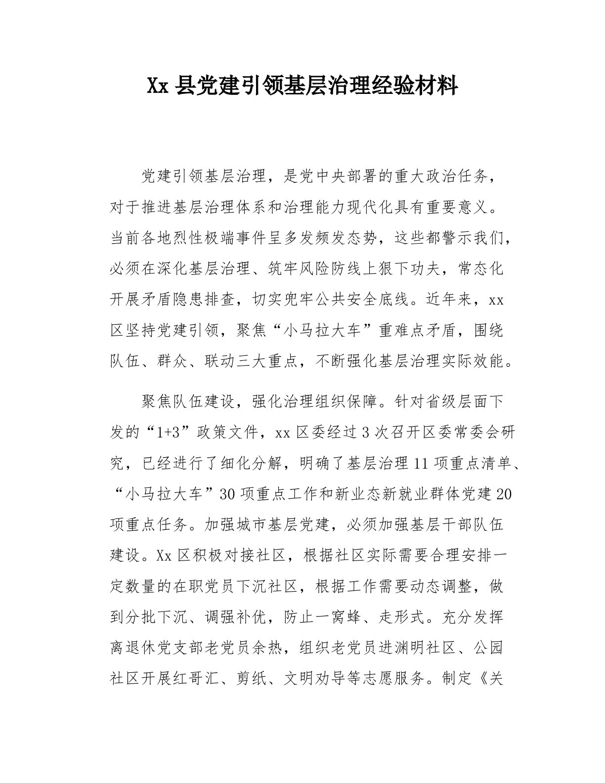 Xx县党建引领基层治理经验材料