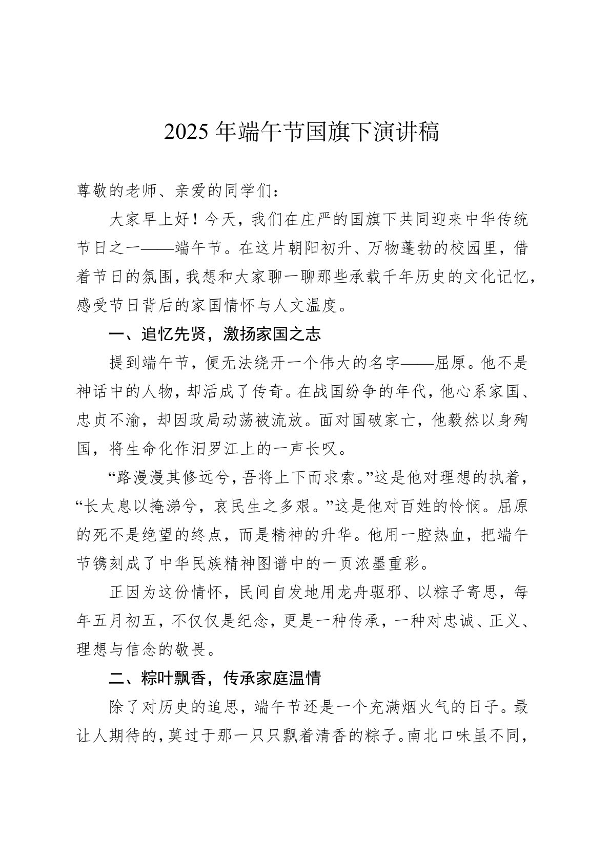 2025年端午节国旗下演讲稿