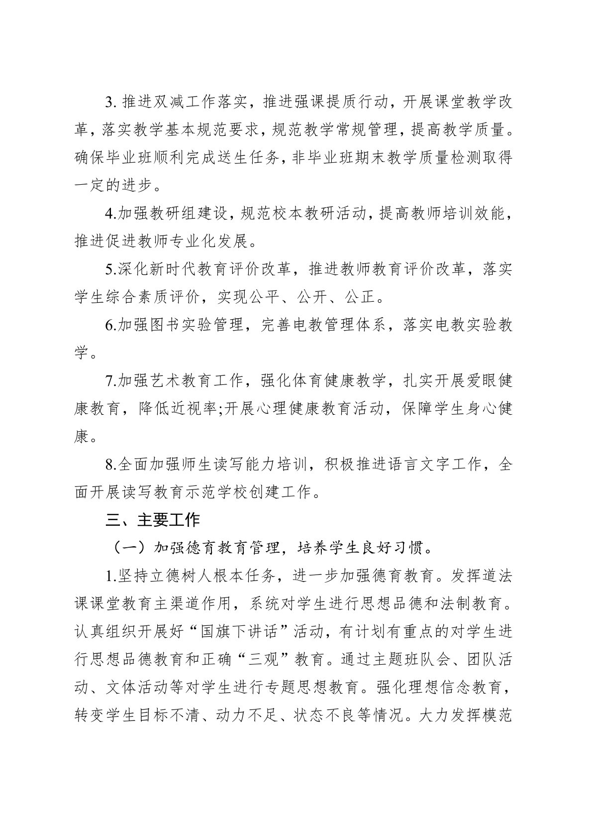 一、指导思想以习近平新时代中国特色社会主义思想为指导,全面贯彻落实党的二十大和各级教育工作会议精神,全面贯彻党的教育方针,坚持教育优先发展。聚焦办好人民满意的教育,加强立德树人机制建设。秉承“激情励志、追求卓越”办学宗旨,追寻“关乎每一个人的人生幸福和他们的美好未来”的育人理念,深化基础教育综合改革。紧紧围绕提升教育教学质量这个中心,突出学生习惯养成和教师专业发展重点任务,切实做好教师专业发展、教学强课提质、习惯养成教育、综合素质评价、促进全面发展五项工作,努力创新教育教学管理思路,扎实工作、锐意进取,切实提升学生核心素养,培养德智体美劳全面发展的社会主义建设者和接班人,努力提升教育的满意度和美誉度。二、任务目标1.坚持立德树人根本任务,加强未成年人思想道德建设。开展“扣好人生第一粒扣子”教...