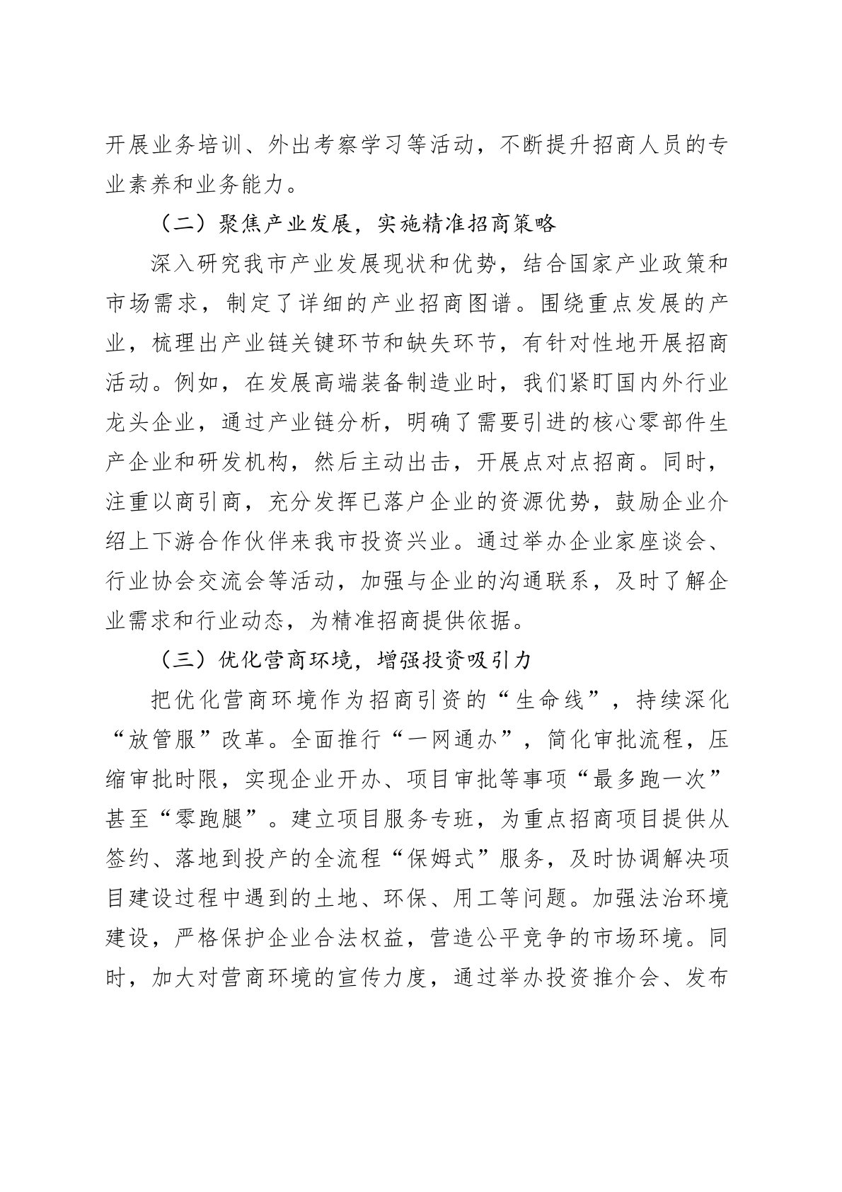 市商务局局长在招商引资工作经验交流会上的讲话