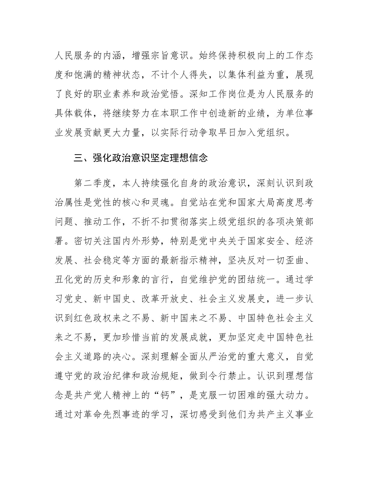 入党积极分子、党员发展对象2025年第二季度思想汇报