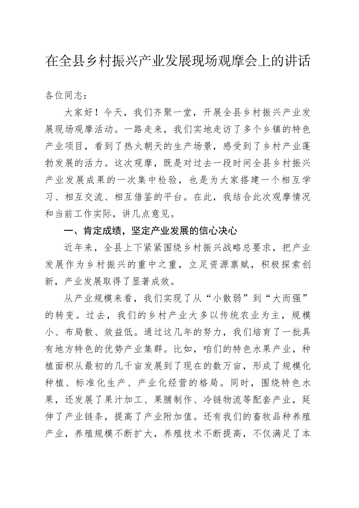 在全县乡村振兴产业发展现场观摩会上的讲话.docx