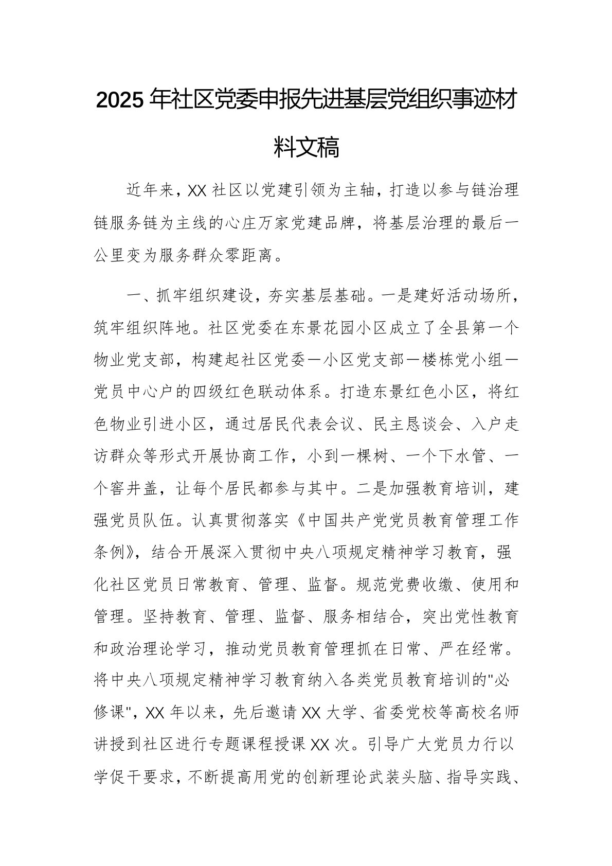 2025年社区党委申报先进基层党组织事迹材料文稿