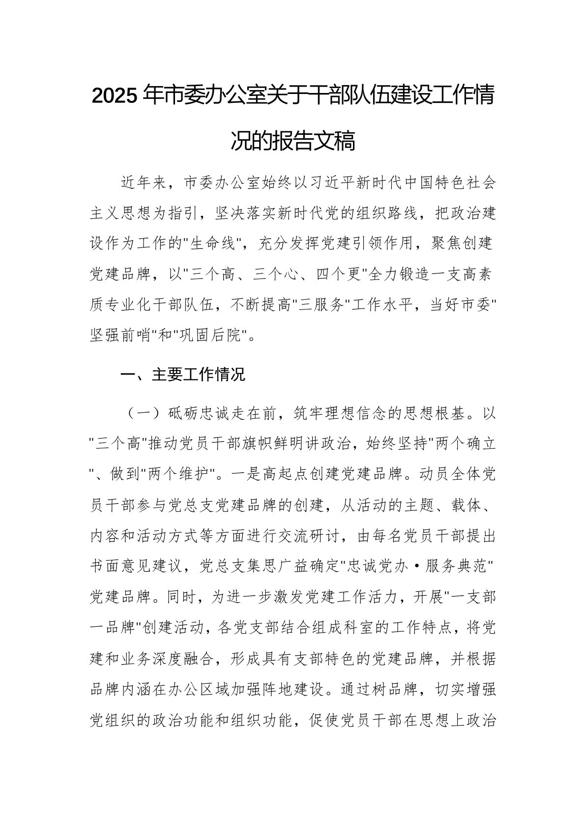 2025年市委办公室关于干部队伍建设工作情况的报告文稿