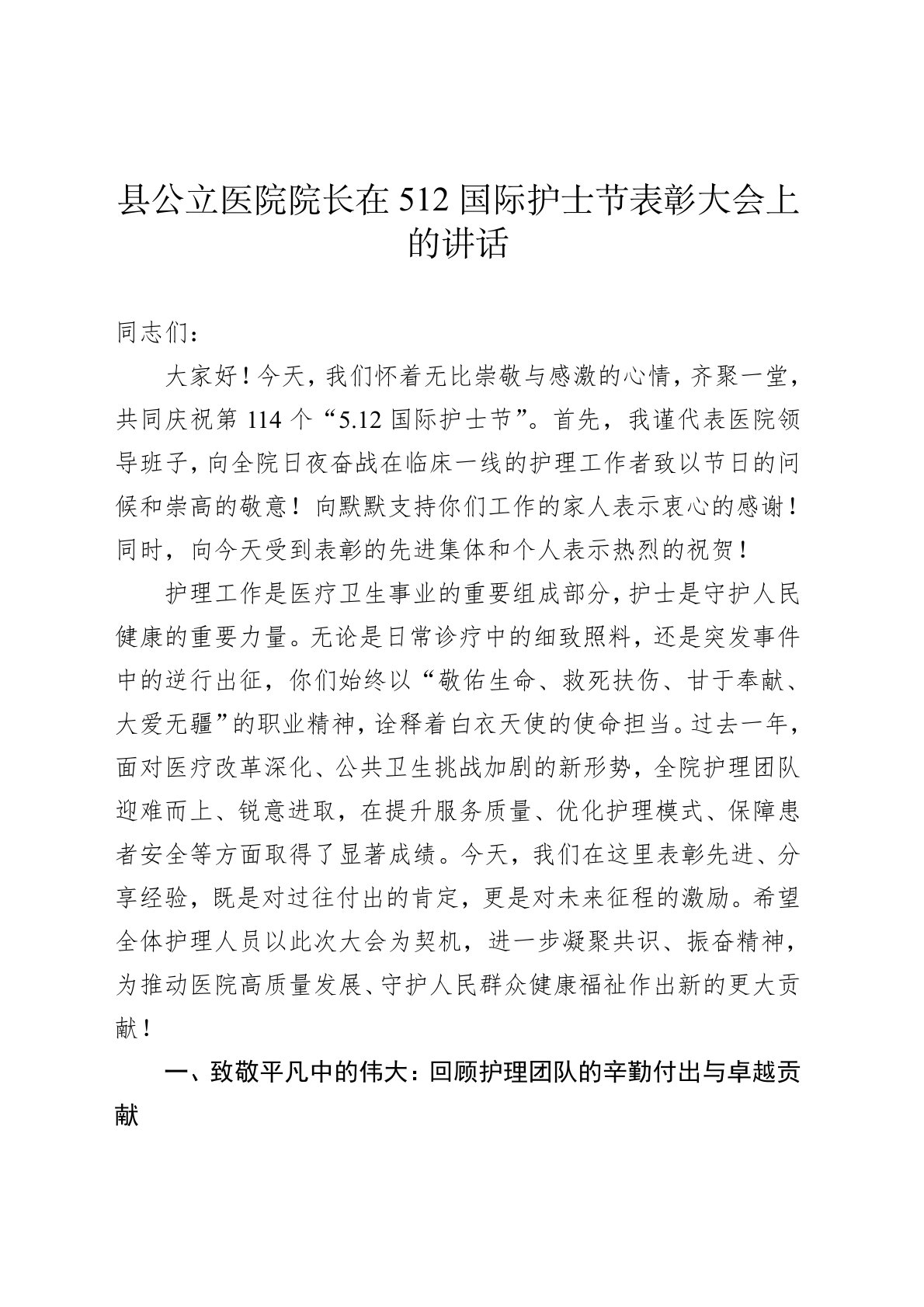 县公立医院院长在512国际护士节表彰大会上的讲话
