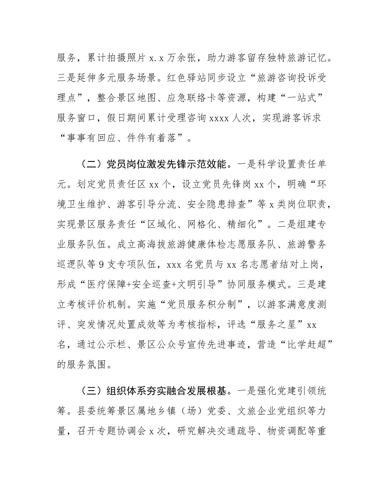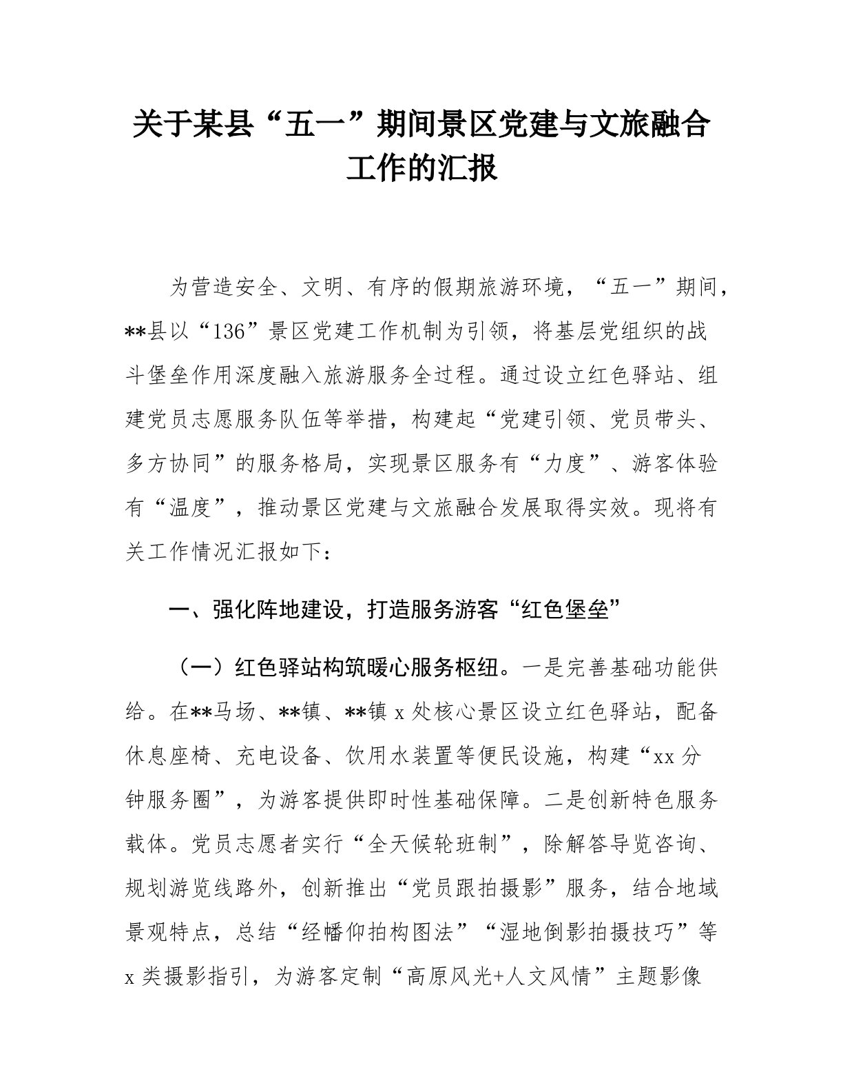 关于某县“五一”期间景区党建与文旅融合工作的汇报