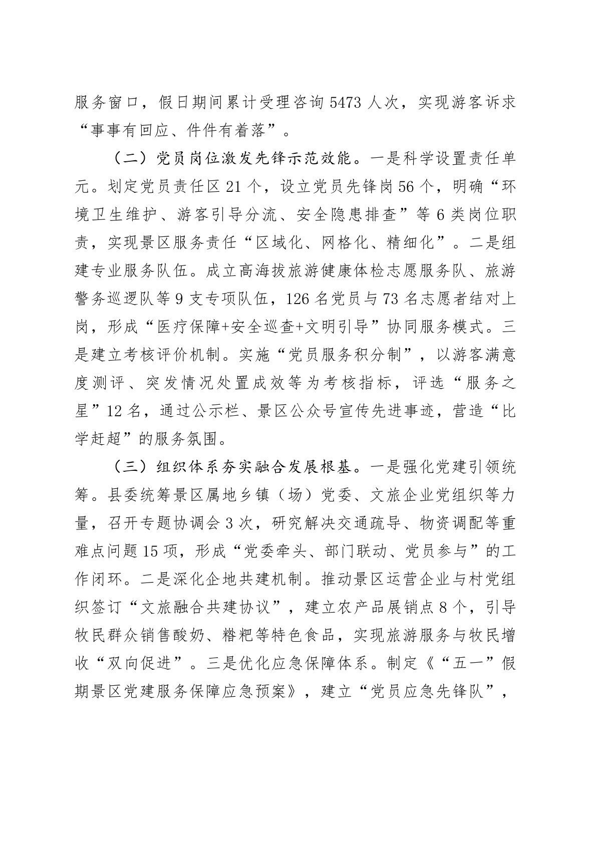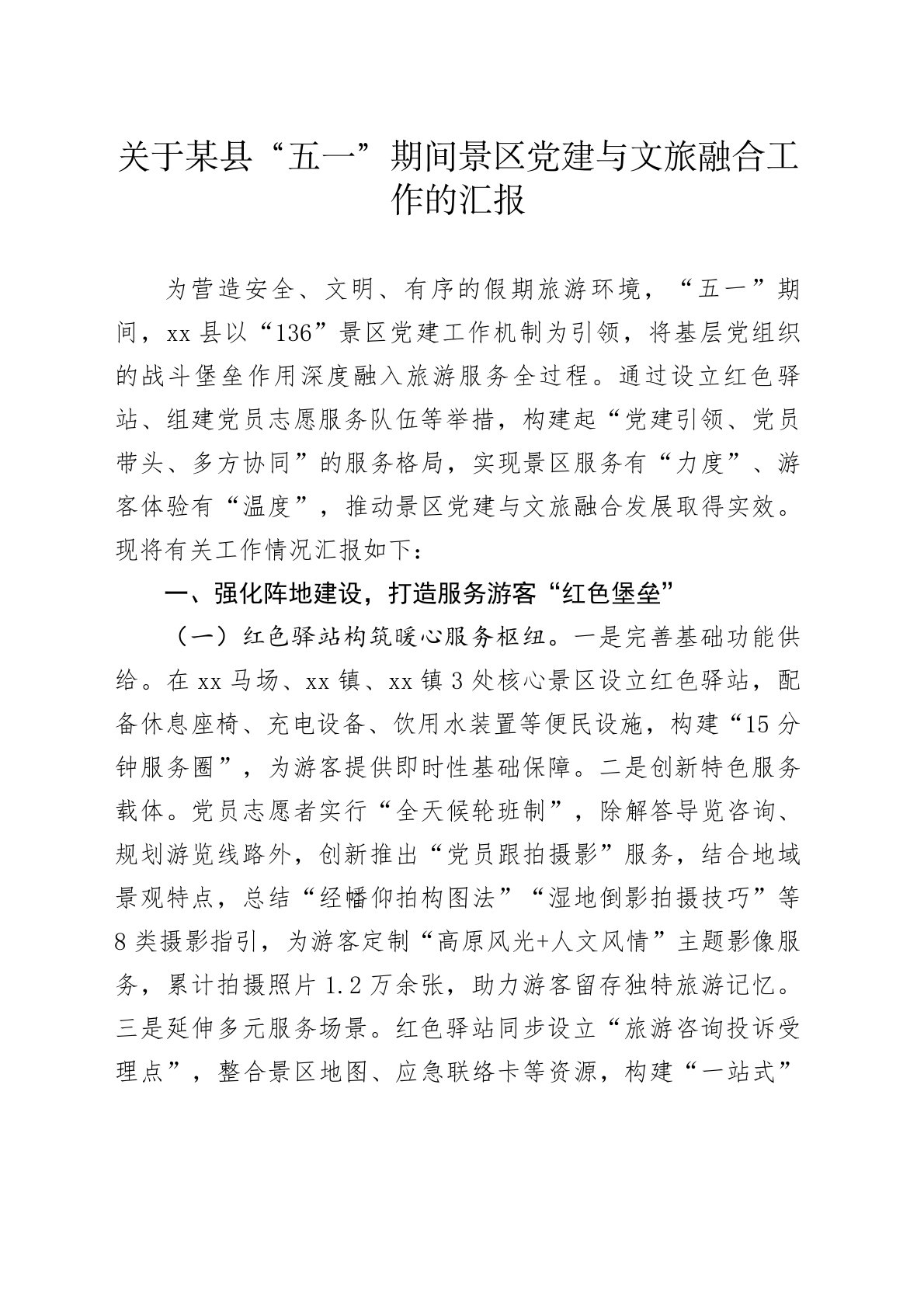 关于某县“五一”期间景区党建与文旅融合工作的汇报