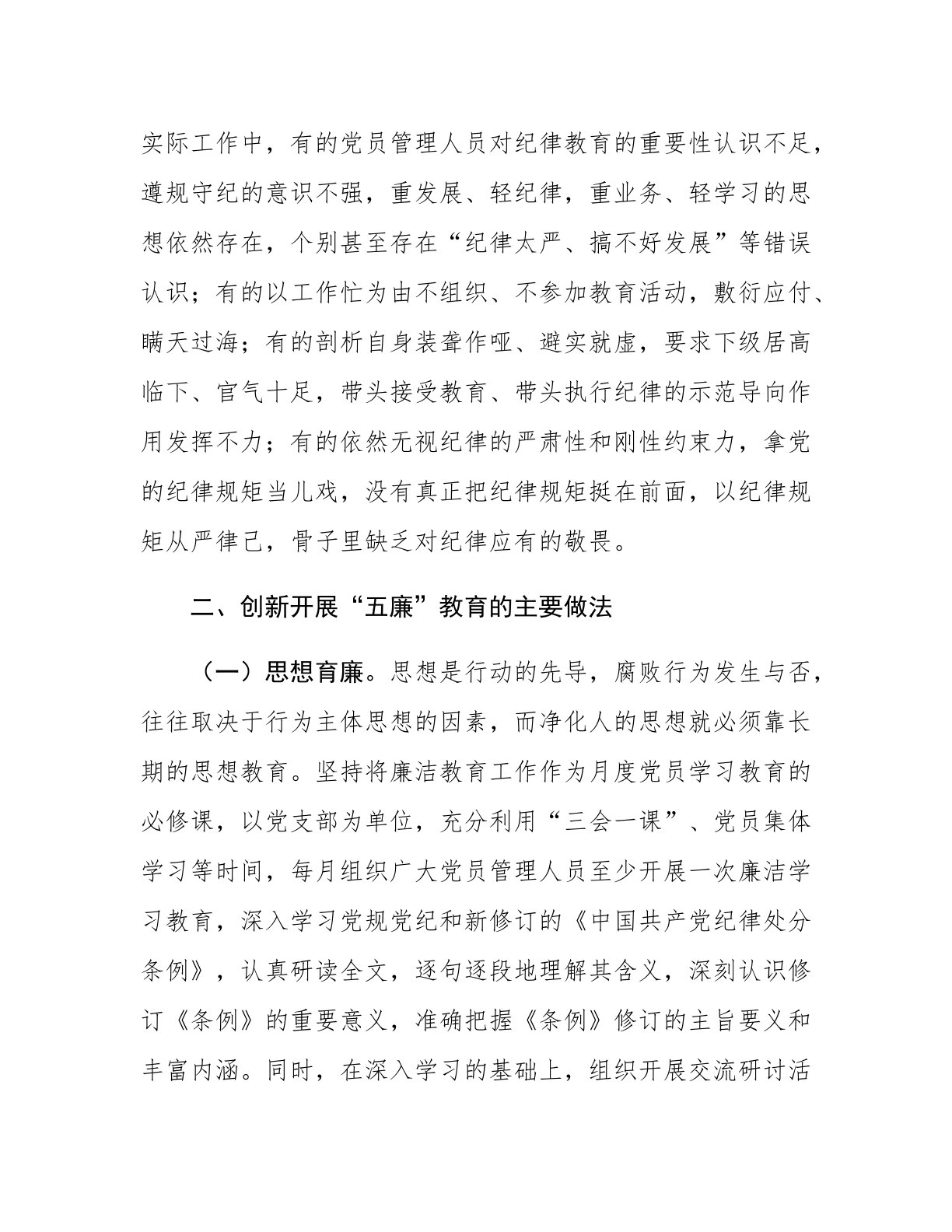 关于坚持“五廉”教育倡树清风正气的工作汇报在二十届中央纪委三次全会上,总书记指出,要加强新时代廉洁文化建设。深入开展党性党风党纪教育,传承党的光荣传统和优良作风,激发共产党员崇高理想追求,把以权谋私、贪污腐败看成是极大的耻辱。要注重家庭家教家风,督促领导干部从严管好亲属子女。积极宣传廉洁理念、廉洁典型,营造崇廉拒腐的良好风尚。博选公司结合单位实际,创新开展思想育廉、警示促廉、提醒倡廉、文化润廉、家庭助廉“五廉”教育,进一步增强了各级党员管理人员的廉洁自律意识,自觉做到严于律己、廉洁从业,为企业高质量发展全面营造了风清气正的良好环境。一、当前廉洁教育工作中存在的主要问题(一)思想认识不够到位。个别党员干部对加强党风廉政教育的重要性和紧迫性认识不足,存在“重业务、轻教育”的思想,导致对党风廉政教...