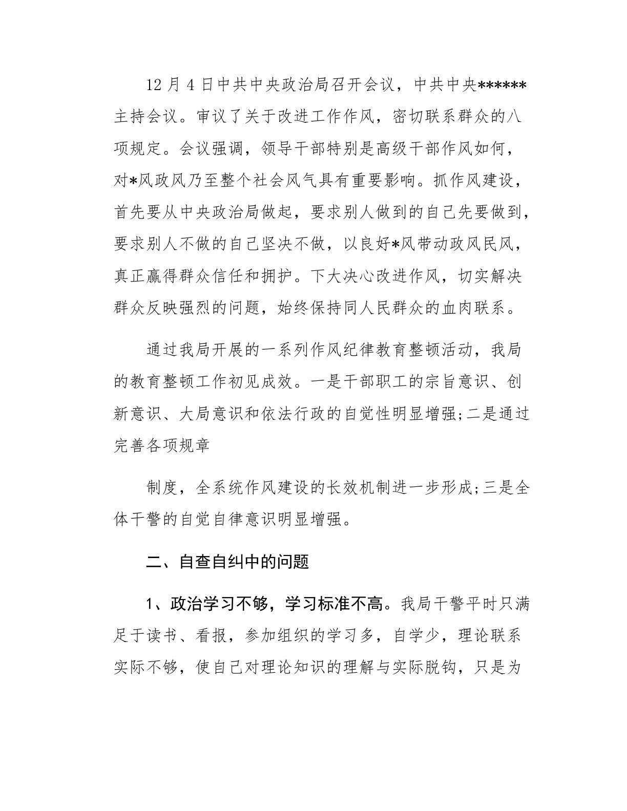 司法局开展干部纪律作风教育整顿工作自查自纠报告自我局开展干部纪律作风教育整顿活动以来,我局集中学习了上级有关文件和我局教育整顿活动方案。学习教育采取自学与集中学习相结合,重点学习了*的十七届五中全会精神和中央、省市十二五规划纲要、***同志在中央纪委六次全会上的讲话、周永康在全国政法工作会议上的讲话等内容。从工作上、学习上了进行了自查自纠。我这一生基本上只是辛苦工作,我可以说,我活了七十五岁,没有那一个月过的是舒服生活,就好象推一块石头上山,石头不停地滚下来又推上去。切实加强干部职工作风建设。根据具体情况,每年要有新进步,扎扎实实办几件实事,多做打基础、谋长远的事,多做惠民利、解民难的实事。群众路线教育实践活动,要直接面对群众关心的问题,只有这种关心群众的活动,才具有长久的生命力,才能深受群...