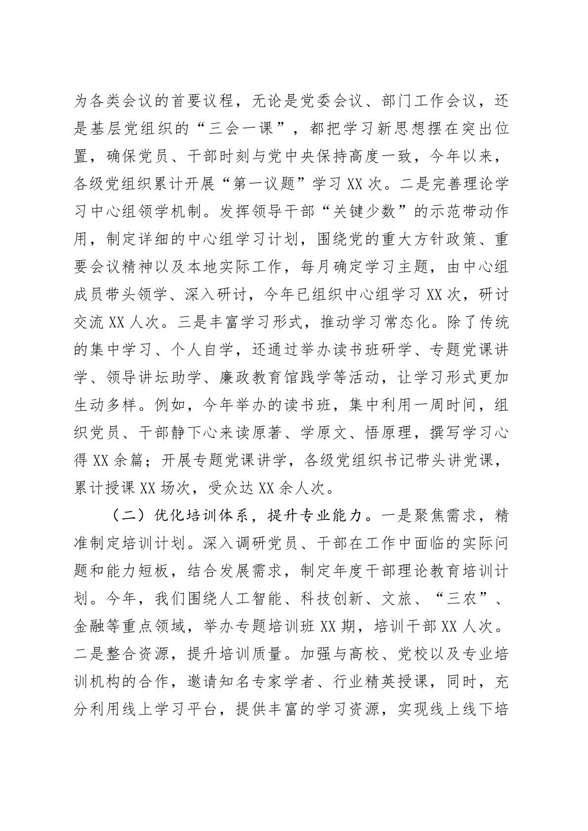 在“传承红色基因,推动理论落地”工作经验交流会上的发言尊敬的各位领导、同仁们:大家好!非常荣幸能够在此次“传承红色基因,推动理论落地”工作经验交流会上发言。全国组织部长会议着重强调,要巩固拓展主题教育成果,持续推动党的创新理论武装走深走实。这一指示精神,为我们的工作指明了清晰的方向。对于我们XX而言,深入贯彻会议精神,就是要全力建立健全长效机制,大力推进红色基因传承,让红色血脉得以赓续,使红色文化在新时代焕发出耀眼光芒;同时,推动党的创新理论在各个领域、各条战线深深扎根,开花结果,转化为推动发展的强大动力。下面,我将从三个方面,向大家汇报我们在相关工作中的实践与探索。一、聚焦“学深悟透”,筑牢思想根基,力促党的创新理论入脑入心理论上的清醒,是政治上坚定的前提。在推动党的创新理论学习过程中,我...