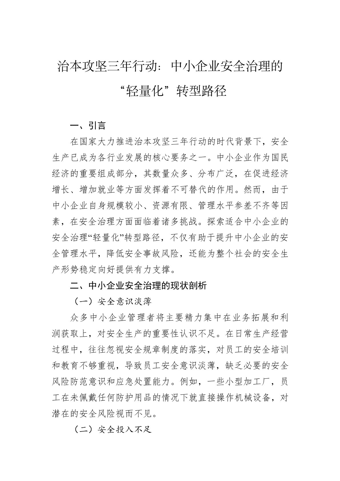 治本攻坚三年行动:中小企业安全治理的“轻量化”转型路径