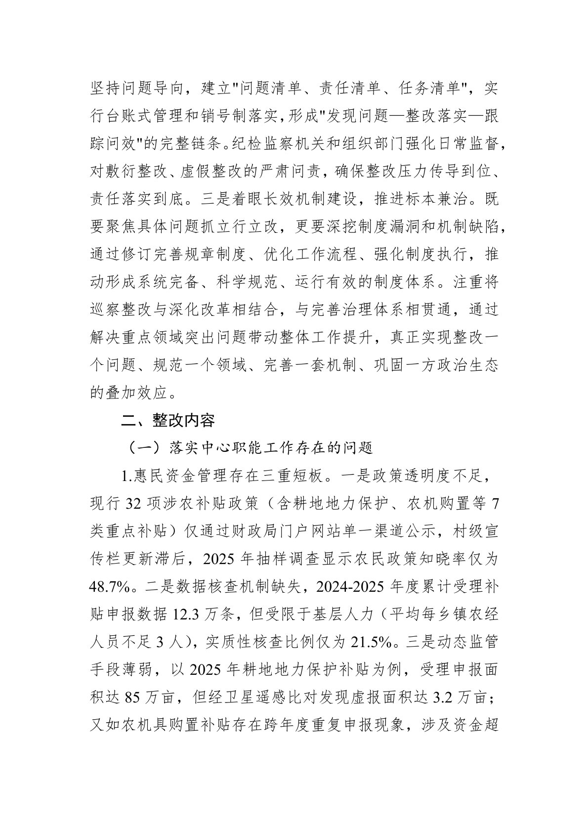 为全面贯彻县委巡察工作部署,认真落实《关于巡察县财政局党组情况的反馈意见》要求,确保整改任务高质高效推进,经局党组专题会议研究,现针对反馈意见涉及的问题,制定整改方案如下。一、指导思想与整改目标(一)指导思想。以习近平新时代中国特色社会主义思想为根本遵循,全面贯彻党的二十大和二十届历次全会精神,紧扣中央及省市县委巡察工作要求,以党的政治建设为统领,强化党组主体责任和班子成员"一岗双责",将巡察整改与主题教育常态化相结合,突出标本兼治、系统施治,聚焦党的建设、从严治党、队伍建设等重点领域,构建"整改一个问题、完善一套机制、堵塞一批漏洞"的闭环体系,切实将整改成果转化为推动财政事业高质量发展的强劲动力。(二)整改目标。一是强化政治建设,确保党的领导贯穿整改全过程。通过整改,着力解决政治站位不高...