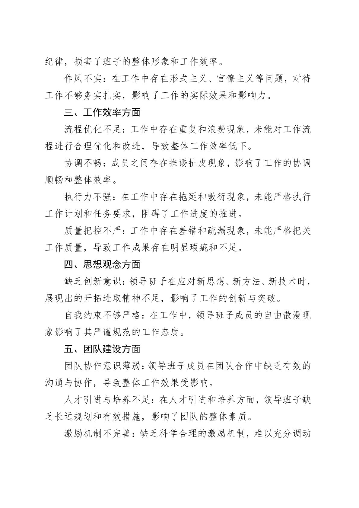 领导班子综合检视问题清单