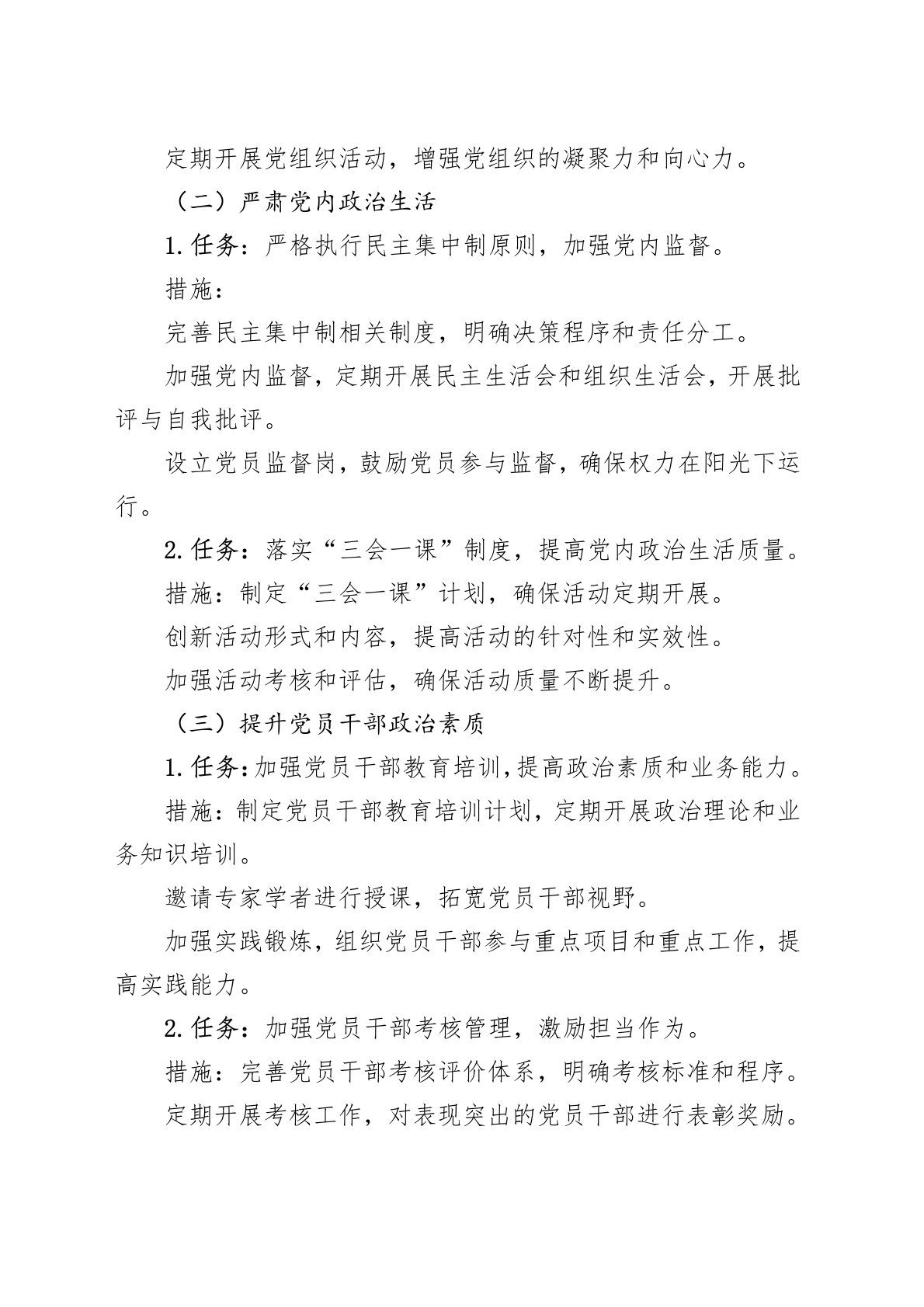 一、引言为深入贯彻党的全面领导,加强和改进国土局政治建设工作,根据上级部门关于政治建设六项重点任务的专项监督检查反馈意见,我局特制定本整改工作方案。本方案旨在全面梳理存在的问题,明确整改目标、任务、措施和责任,确保整改工作取得实效,进一步提升国土局政治建设水平,为经济社会发展提供坚强保障。二、整改背景与依据(一)整改背景近年来,我局在政治建设方面取得了显着成效,但对照上级要求和人民群众期待,仍存在一些不足。特别是政治建设六项重点任务方面,存在一些薄弱环节和突出问题,需要通过专项监督检查和整改工作加以解决。(二)整改依据本次整改工作主要依据上级部门关于政治建设六项重点任务的专项监督检查反馈意见,以及相关法律法规、政策文件和规章制度。同时,结合我局实际情况,制定切实可行的整改措施。三、整改目标(...