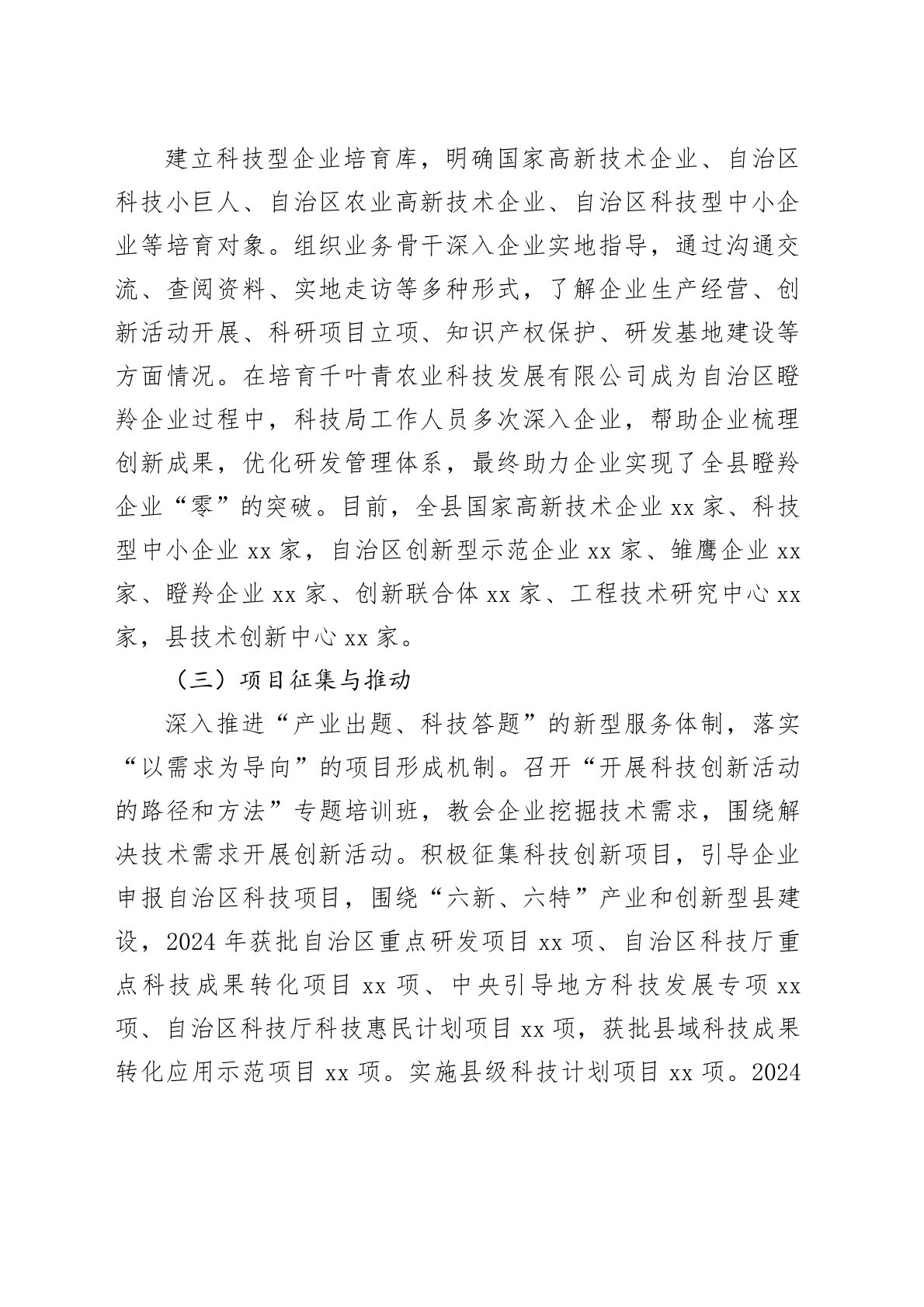 县科技局科技服务分析研判报告xx县作为宁夏科技创新示范县,近年来以科技服务为抓手,深入实施创新驱动发展战略,通过政策宣传与落实、企业培育与指导、项目征集与推动、成果转化与对接等举措,构建了“政府主导、企业主体、市场导向、产学研协同”的科技创新服务体系。本报告结合xx县科技局近年实践,分析其科技服务成效、现存问题及未来发展方向,为县域科技创新提供参考。一、科技服务工作现状(一)政策宣传与落实xx县科技局全面开展科技惠企政策宣传活动,确保规上科技型企业政策全覆盖,规下科技型企业全知晓。积极发放全区科技创新“二十二”条政策读本,指导企业用好“xx政策计算器”,帮助企业精准把握政策红利。积极争取和落实国家、自治区科技创新研发费用加计扣除等一系列政策措施,2023年R&D经费投入完成xx亿元,...