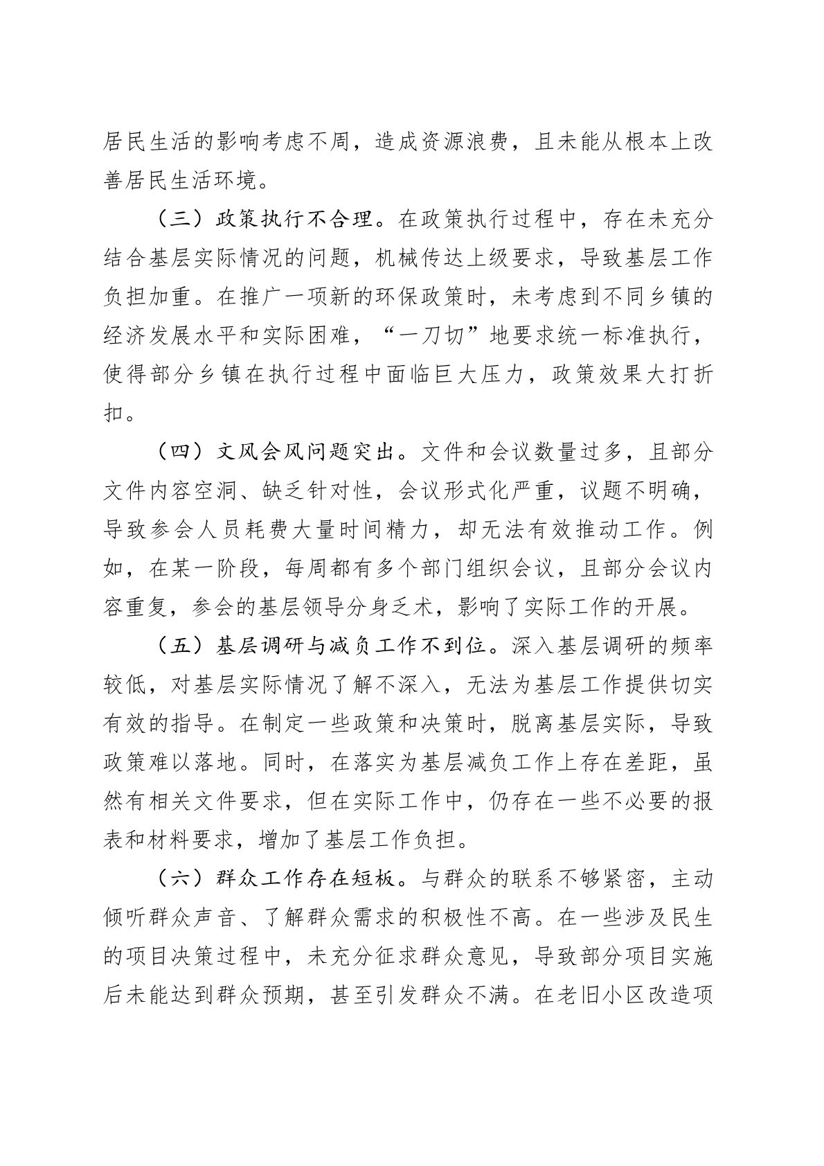 领导干部关于作风建设深入贯彻中央八项规定精神学习教育查摆问题清单及整改措施的报告20250523