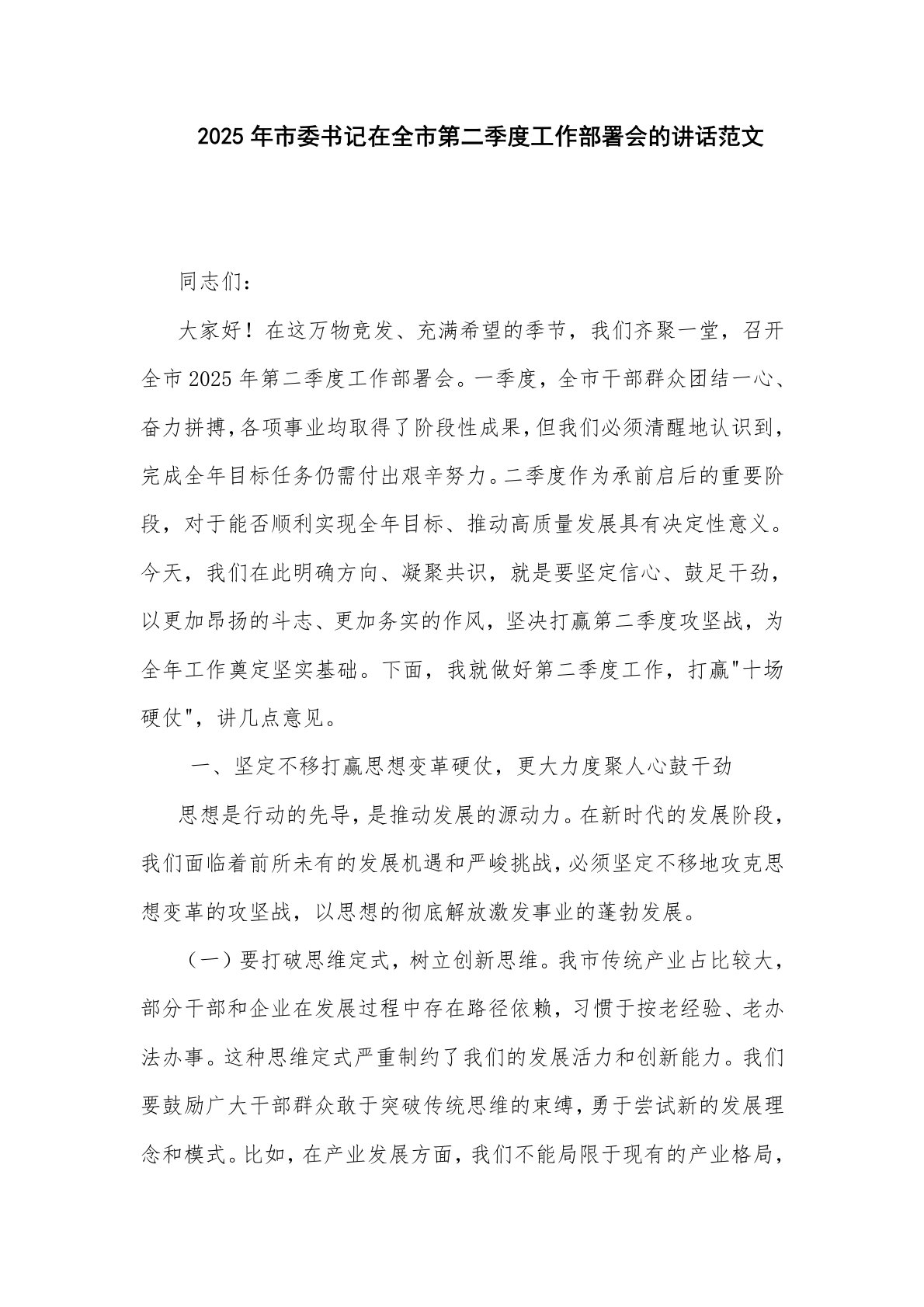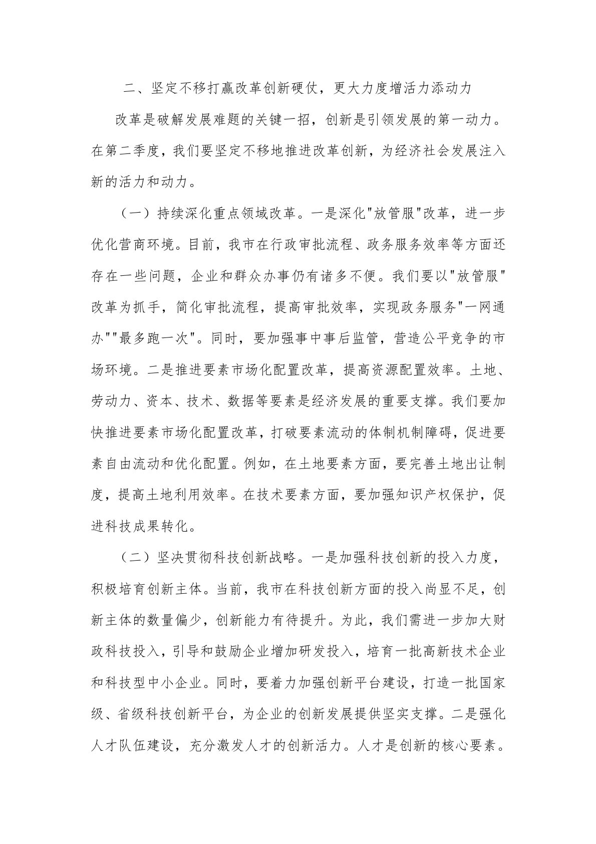 2025年市委书记在全市第二季度工作部署会的讲话范文