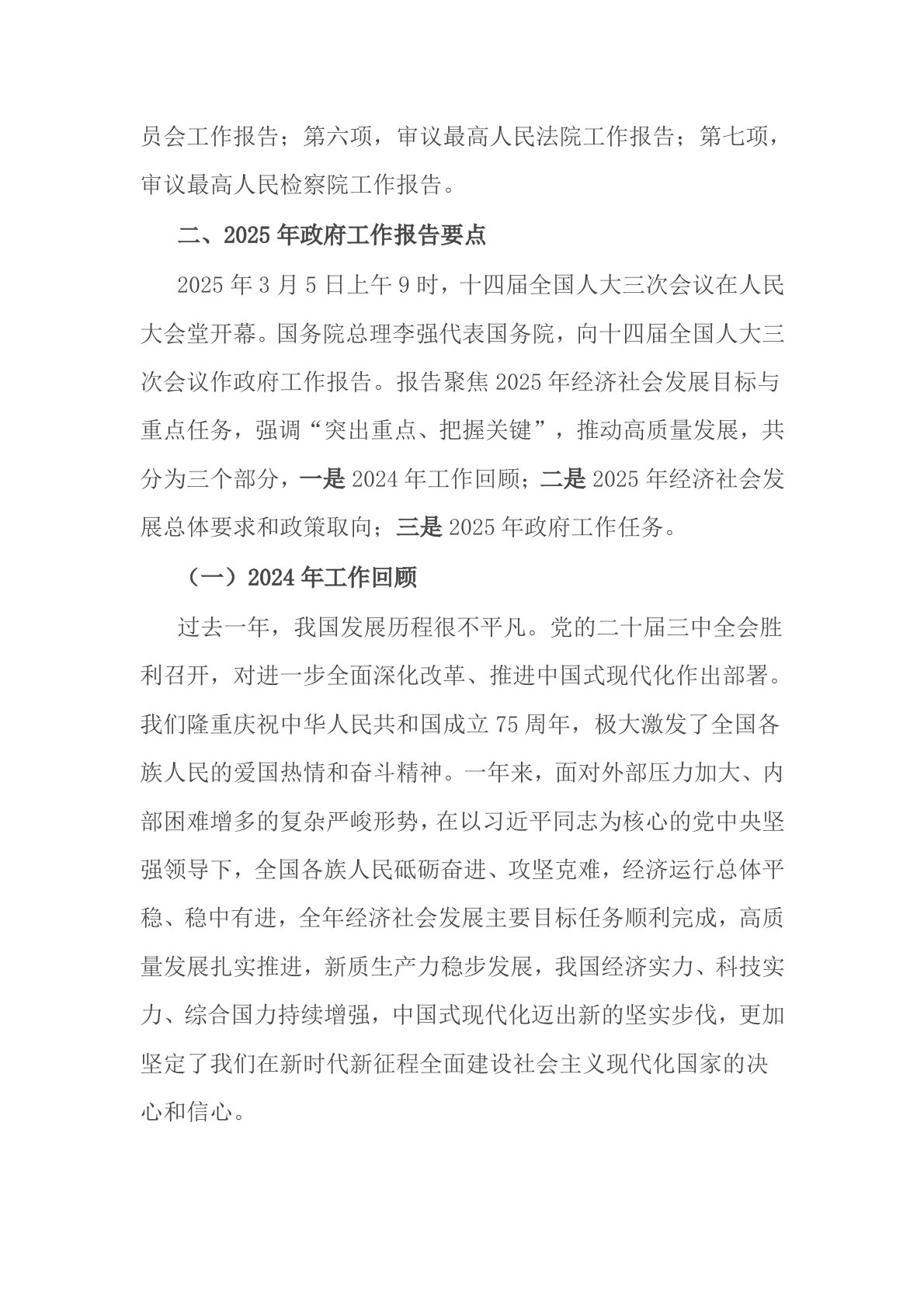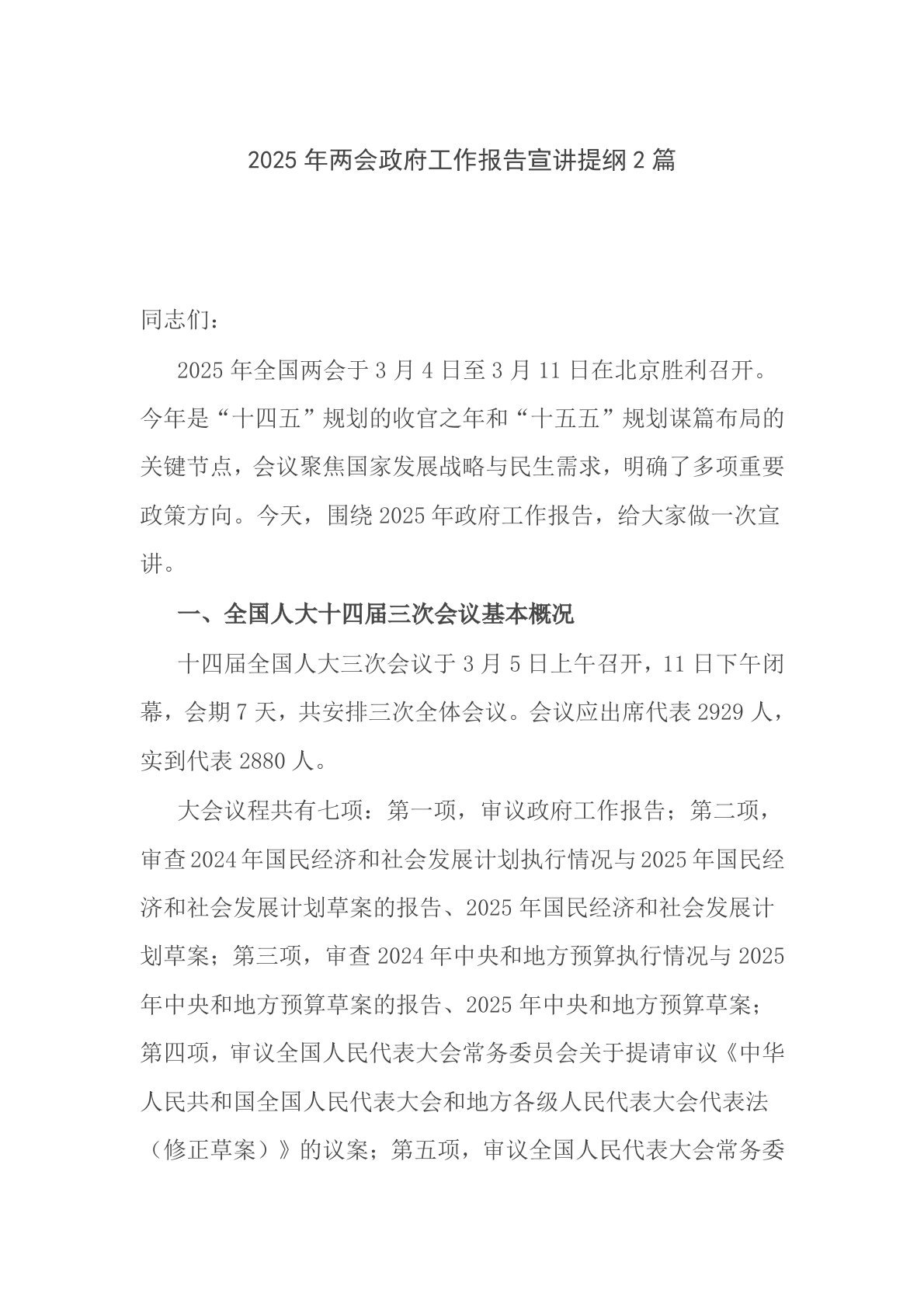 2025年两会政府工作报告宣讲提纲2篇