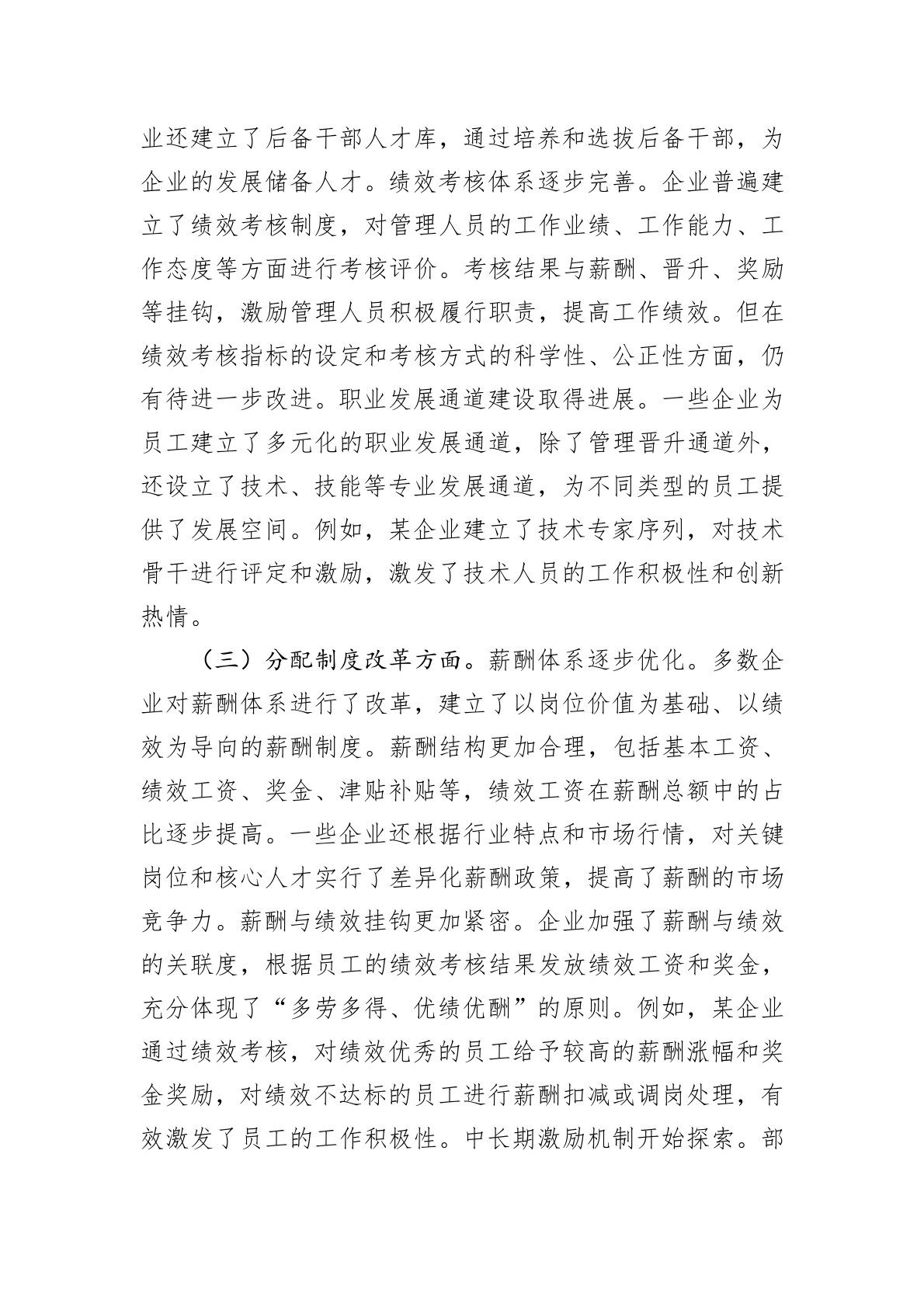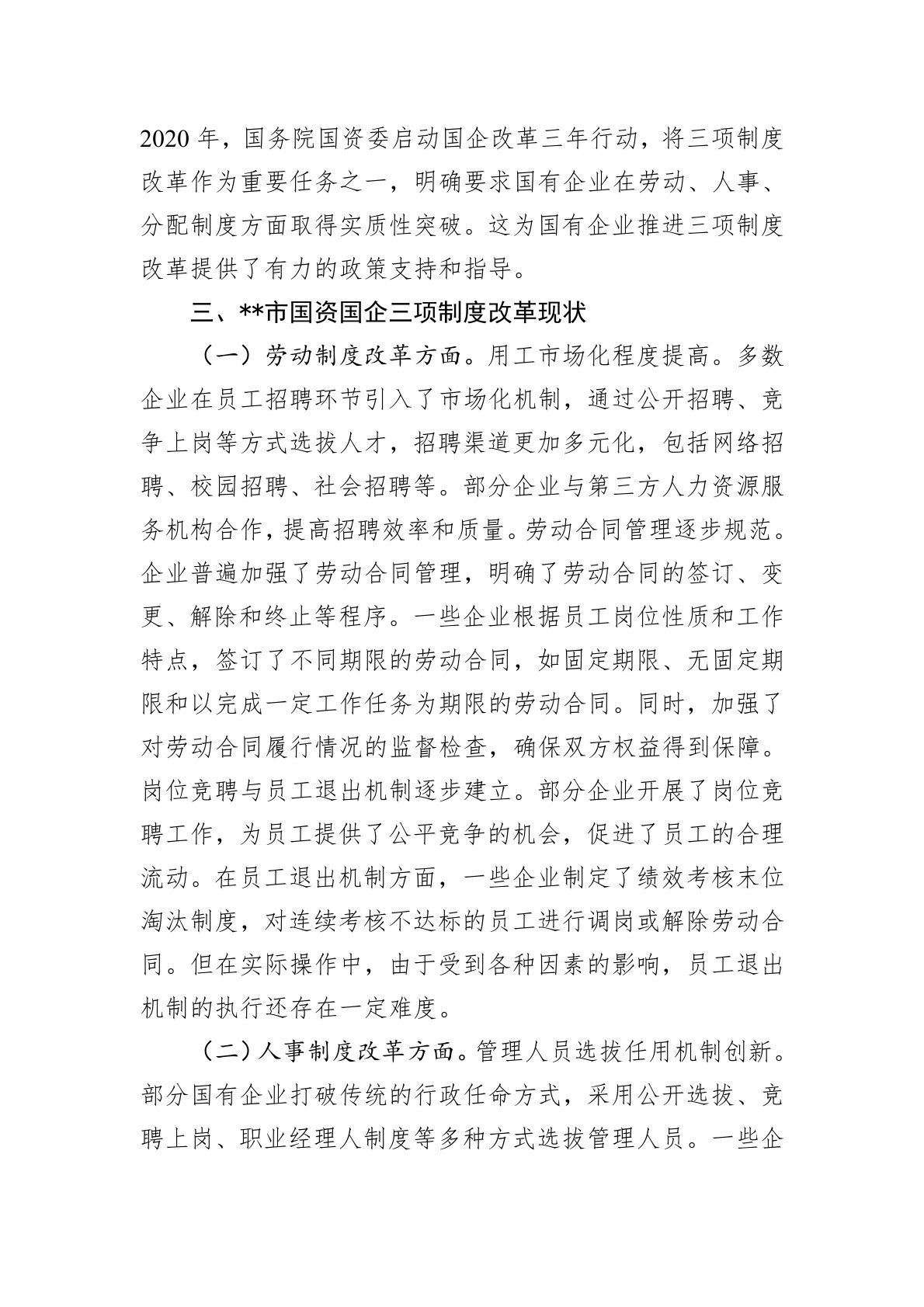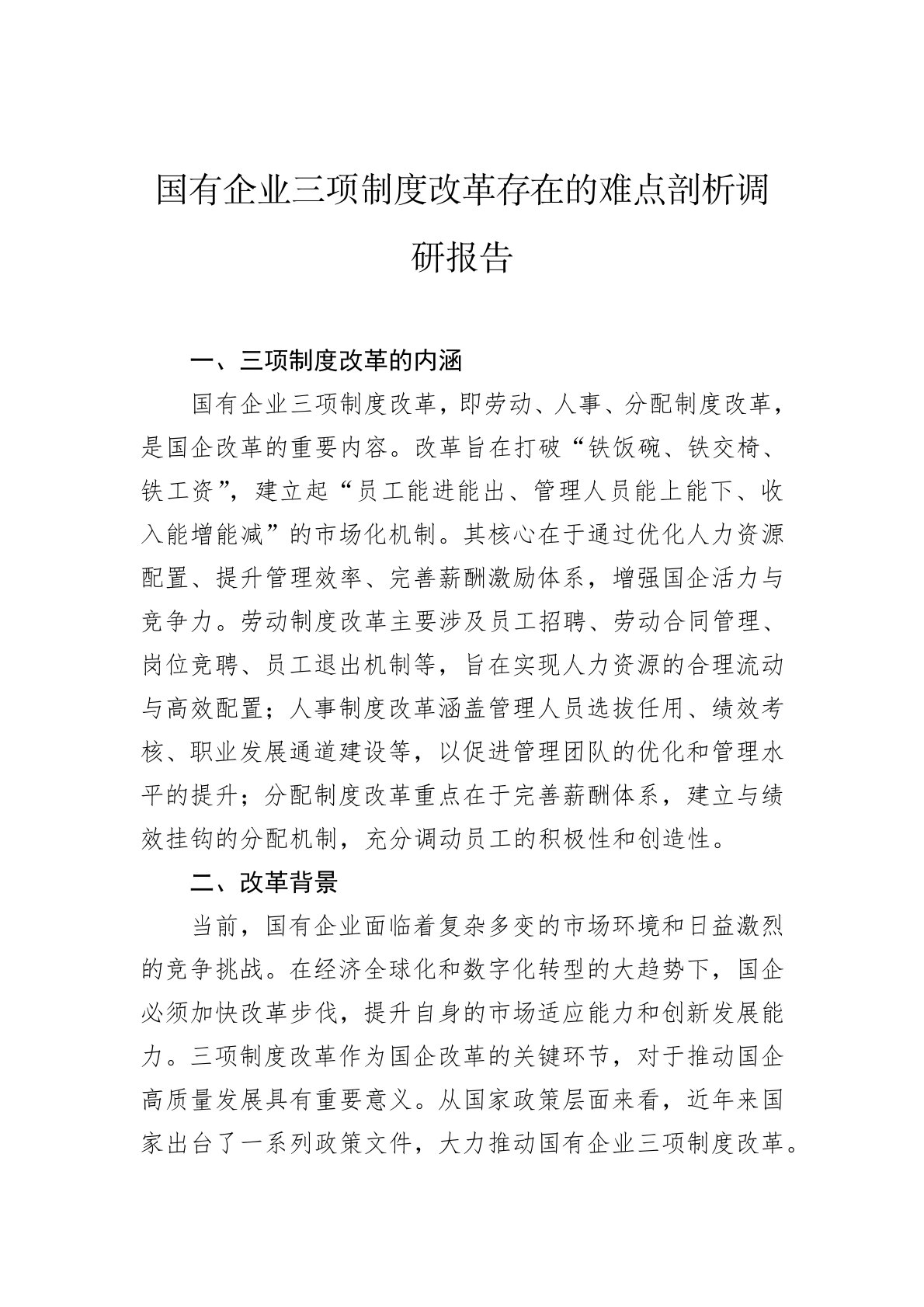 国有企业三项制度改革存在的难点剖析调研报告