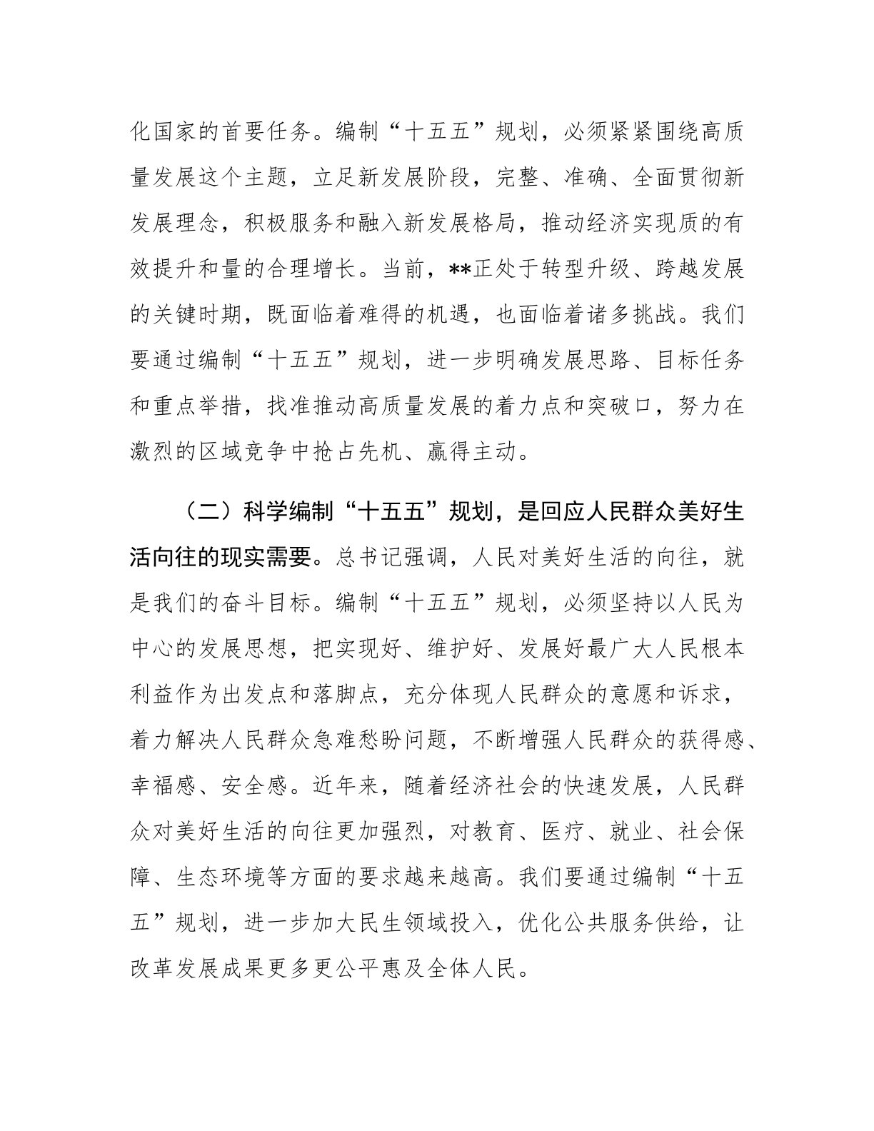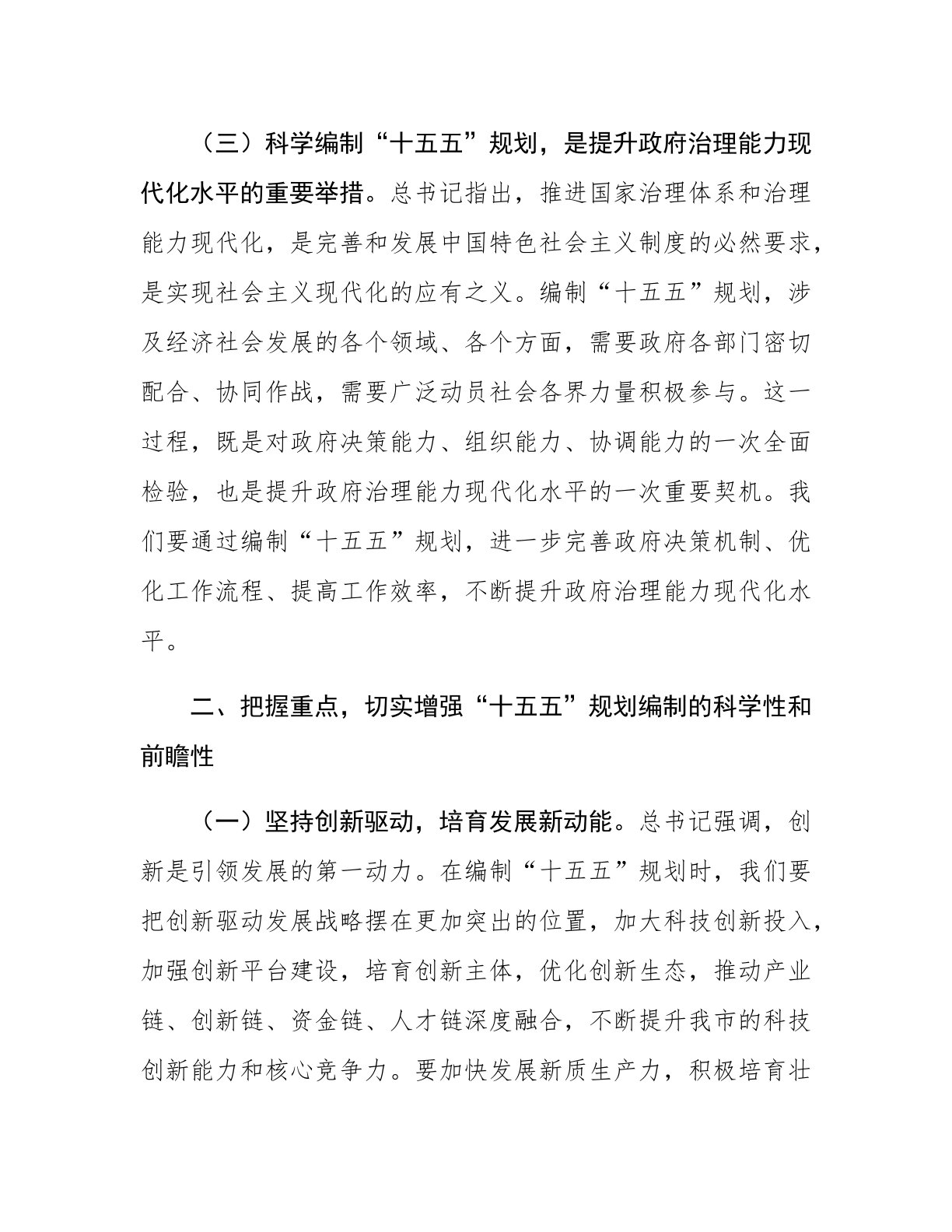 在市政府理论学习中心组专题学习总书记对“十五五”规划编制工作作出重要指示精神研讨交流会上的发言
