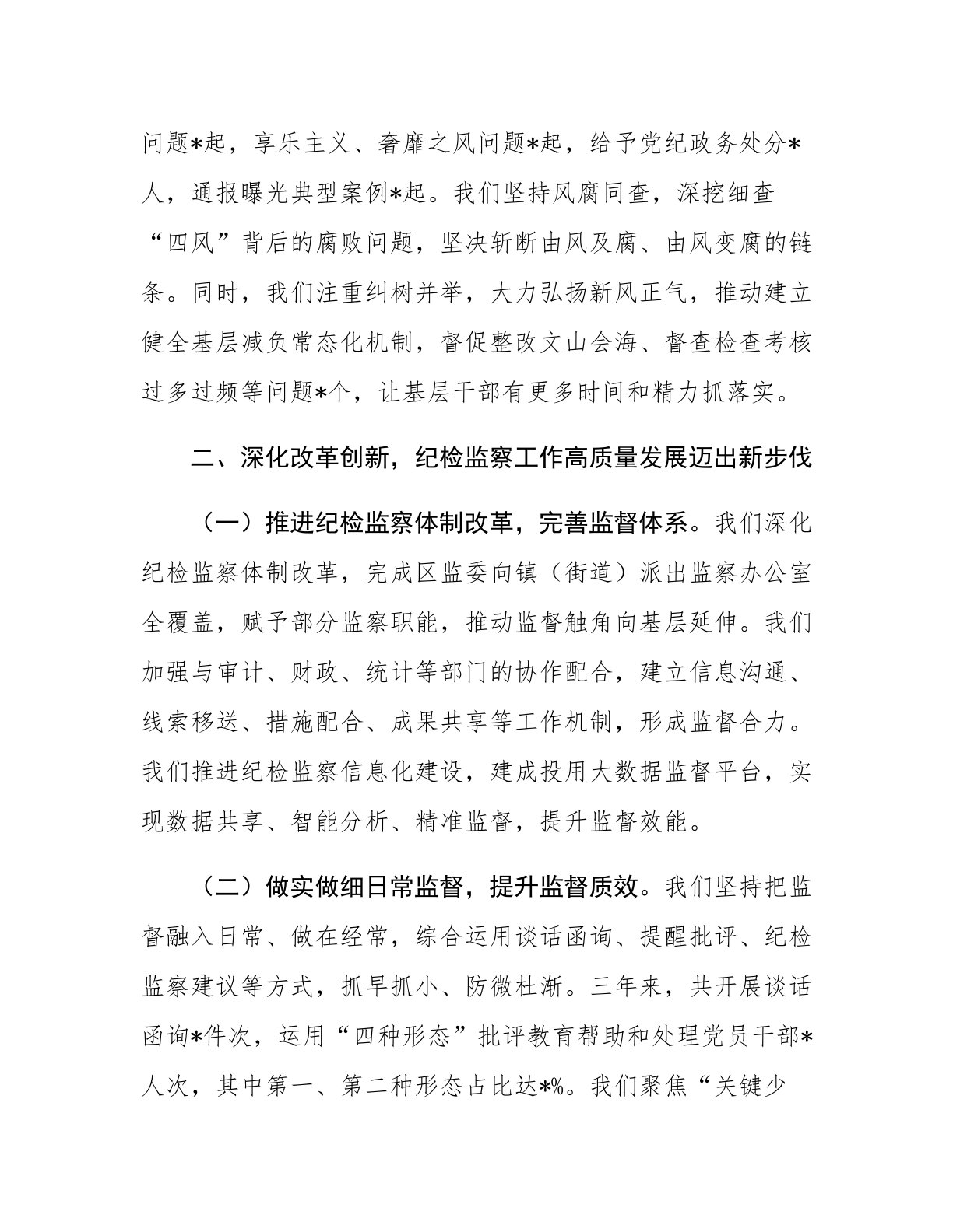 区纪委监委书记近三年工作总结
