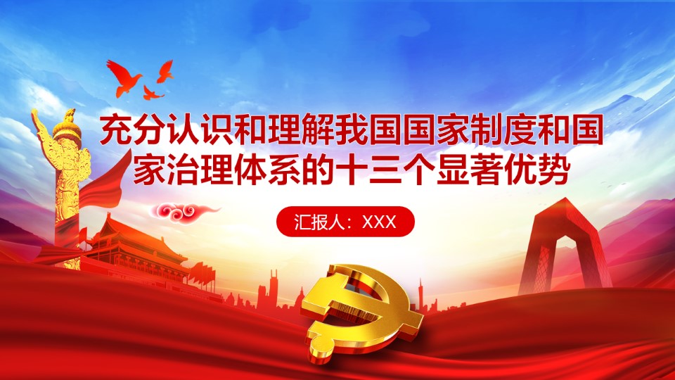 标题:我国国家制度和国家治理体系的十三个显著优势PPT