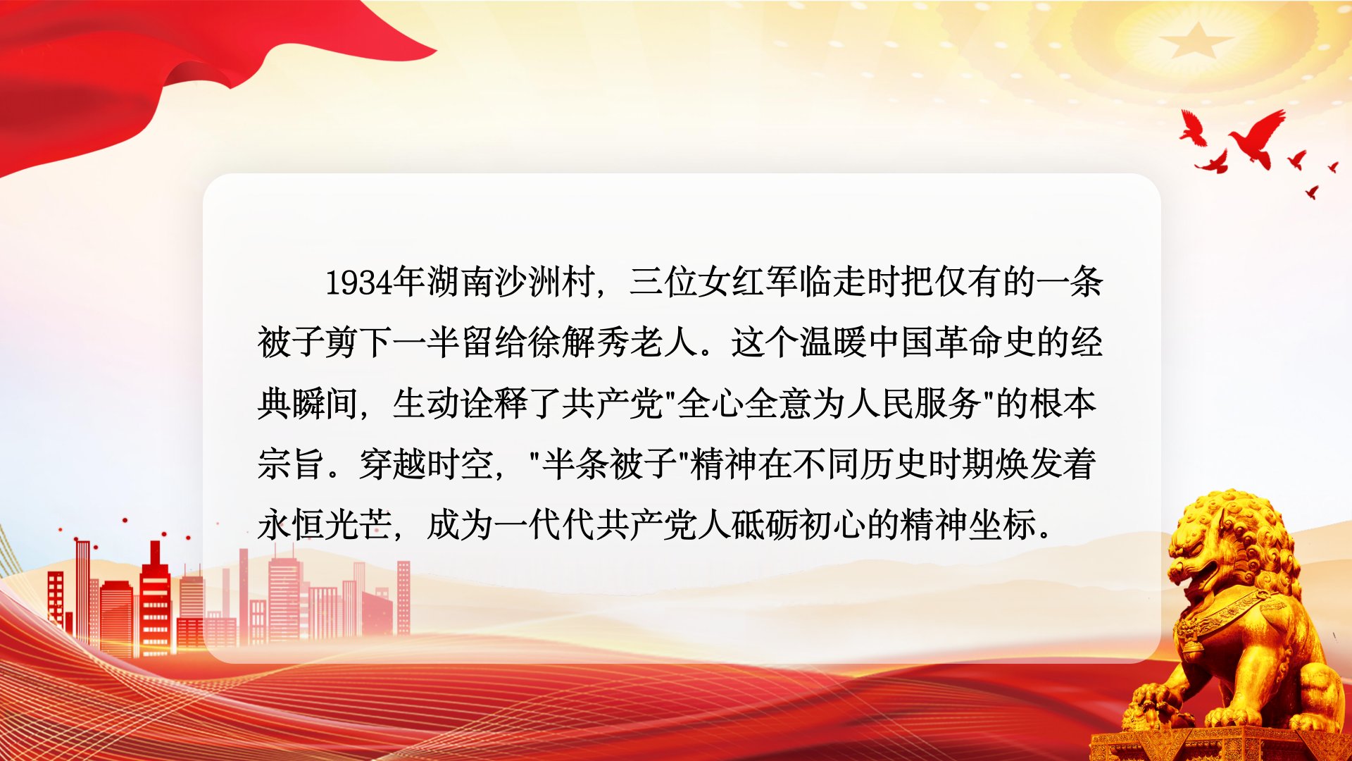标题:微党课PPT课件:从“半条被子”看百年初心之路
