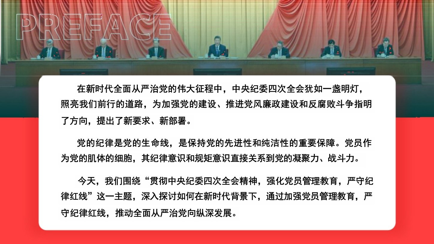 主题党课PPT(附讲稿)《贯彻中央纪委四次全会精神,强化党员管理教育,严守纪律红线》