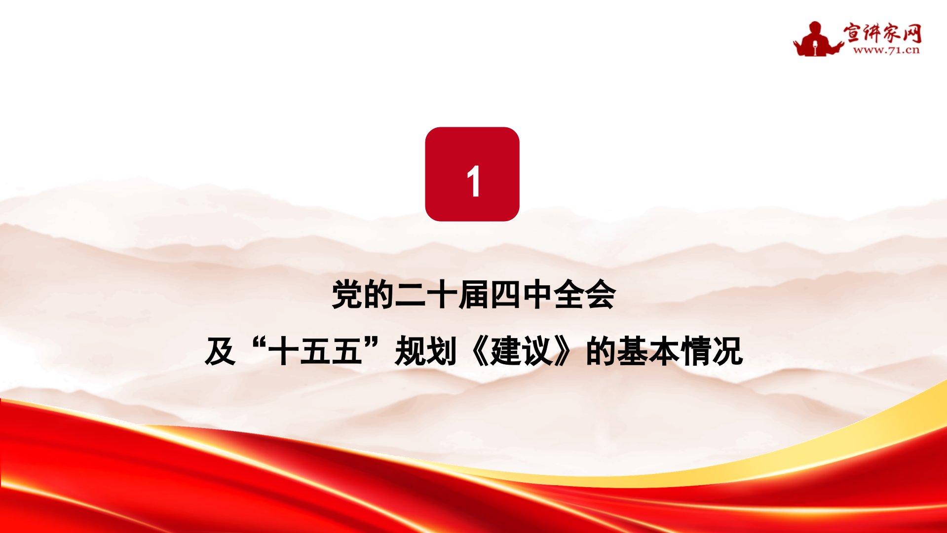 夯实基础、全面发力,奋力谱写中国式现代化新篇章——学习贯彻党的二十届四中全会精神1党的二十届四中全会及“十五五”规划《建议》的基本情况2五年规划:中国共产党治国理政的重要方式3党的二十届四中全会及“十五五”规划《建议》的基本特点4坚持和加强党中央集中统一领导、营造风清气正的政治生态目录党的二十届四中全会及“十五五”规划《建议》的基本情况1中国共产党第二十届中央委员会第四次全体会议出席这次全会的有,中央委员168人,候补中央委员147人。中央纪律检查委员会常务委员会委员和有关方面负责同志列席会议。党的二十大代表中部分基层同志和专家学者也列席了会议。全会听取和讨论了习近平受中央政治局委托所作的工作报告,审议通过了《中共中央关于制定国民经济和社会发展第十五个五年规划的建议》。习近平就《建议(讨论稿...