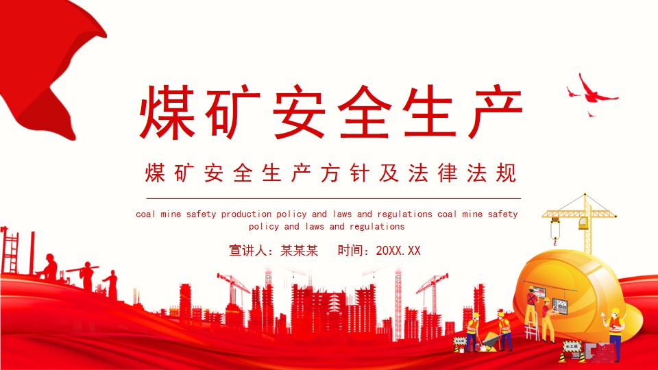 标题:煤矿安全生产方针及法律法规红色党政PPT(20210823)