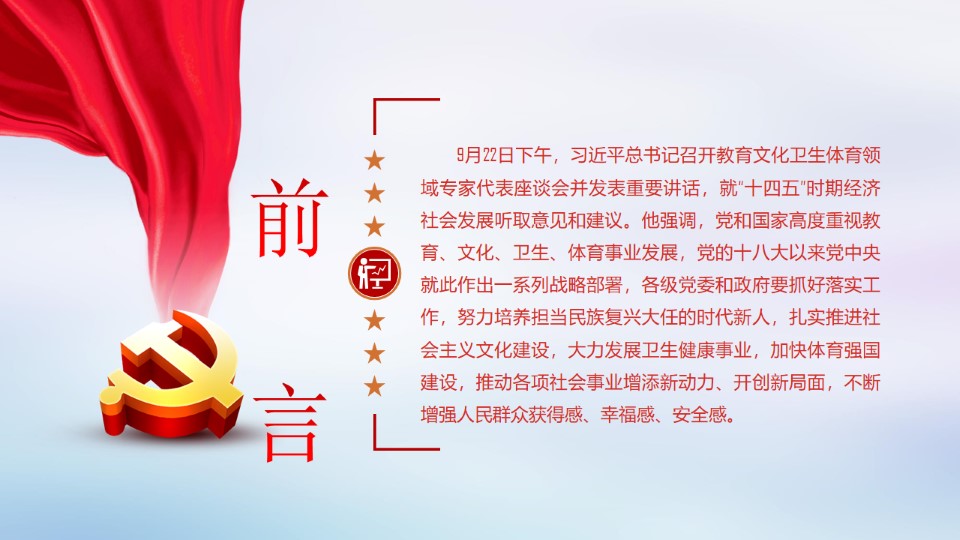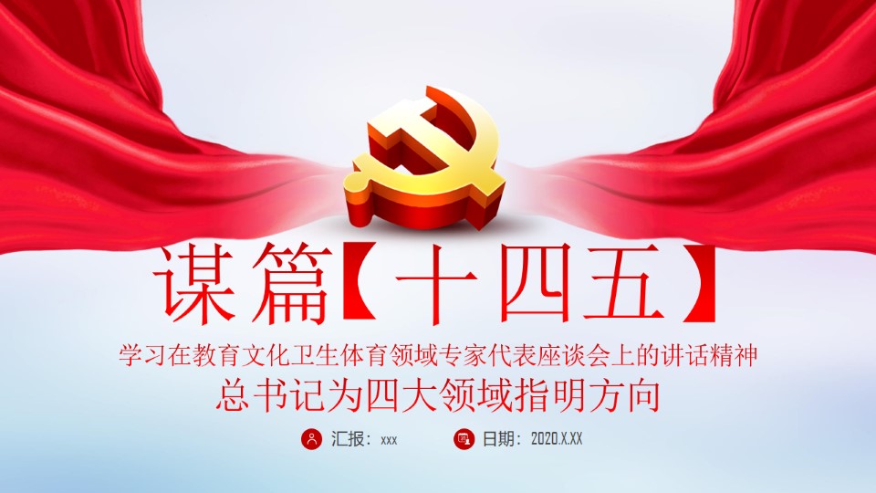 标题:谋篇十四五学习在教育文化卫生体育领域专家代表座谈会上的讲话精神课件PPT(20201103)