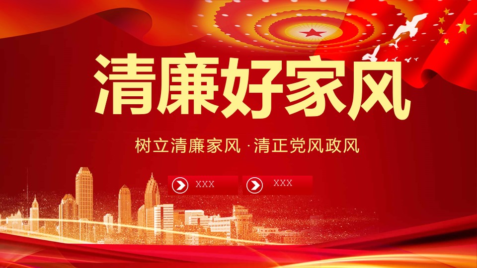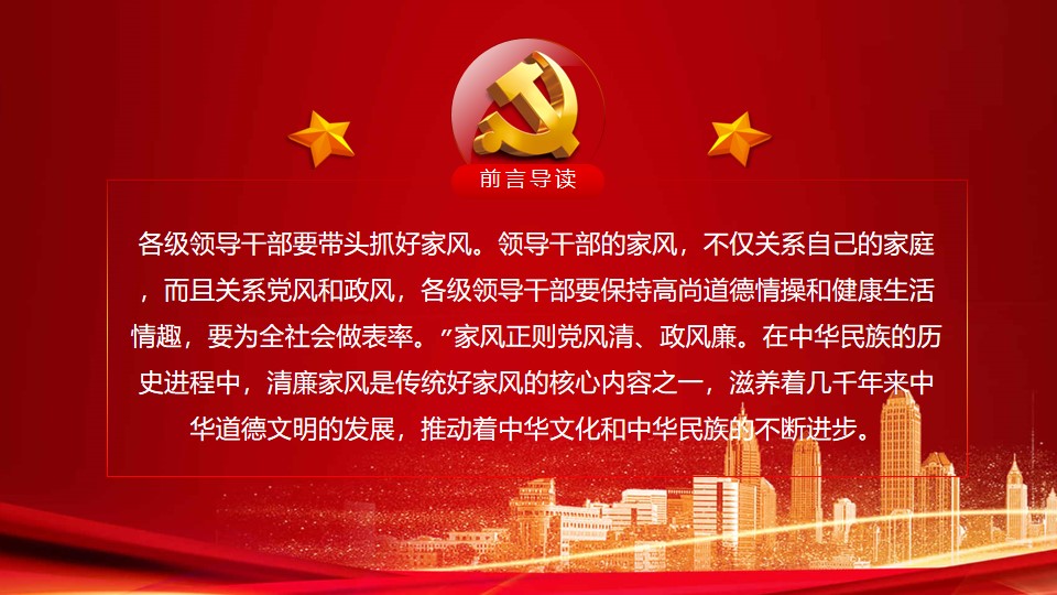 标题:树立清廉家风清正党风政风之党政教育PPT(20210824)