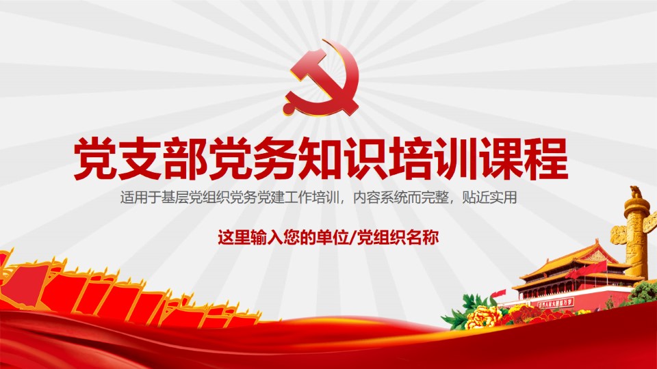 标题:党支部党务知识培训PPT模板